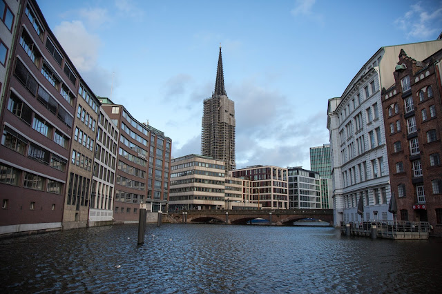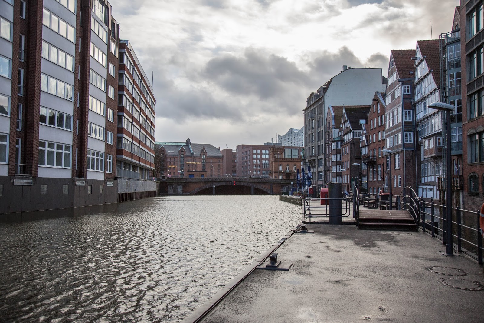 Cruzamos toda la calle. Desde aquí vemos mejor el edificio donde está el museo. Es inmenso! Toma toda la cuadra, y entramos a un barrio completamente distinto, visualmente hablando, de los que estuvimos viendo en este recorrido. Esta parte se denomina Cremon, el nombre de esta pequeña isla que se encontraba fuera y luego fue anexada a Hamburgo como ciudad.
