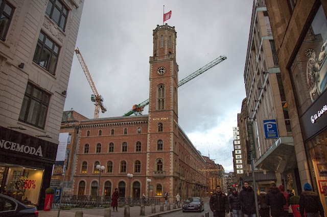 Estas casas corresponden a edificios construidos en el siglo 18 o 19. La calle sin embargo se ve mencionada ya en el 1300. Así que sin duda este es el sitio más antiguo de la ciudad. Por ser uno de los mas turísticos también se encuentran preciosos y hermosamente bien ambientados restaurants. Y no estamos lejos de las iglesias más famosas de la ciudad. Como es el caso de St. Nikolai que vemos abajo, pero a la cual no pudimos llegar por falta de tiempo. Pudimos notar que se encuentra bajo trabajos de restauración así que dejamos la visita para la próxima.