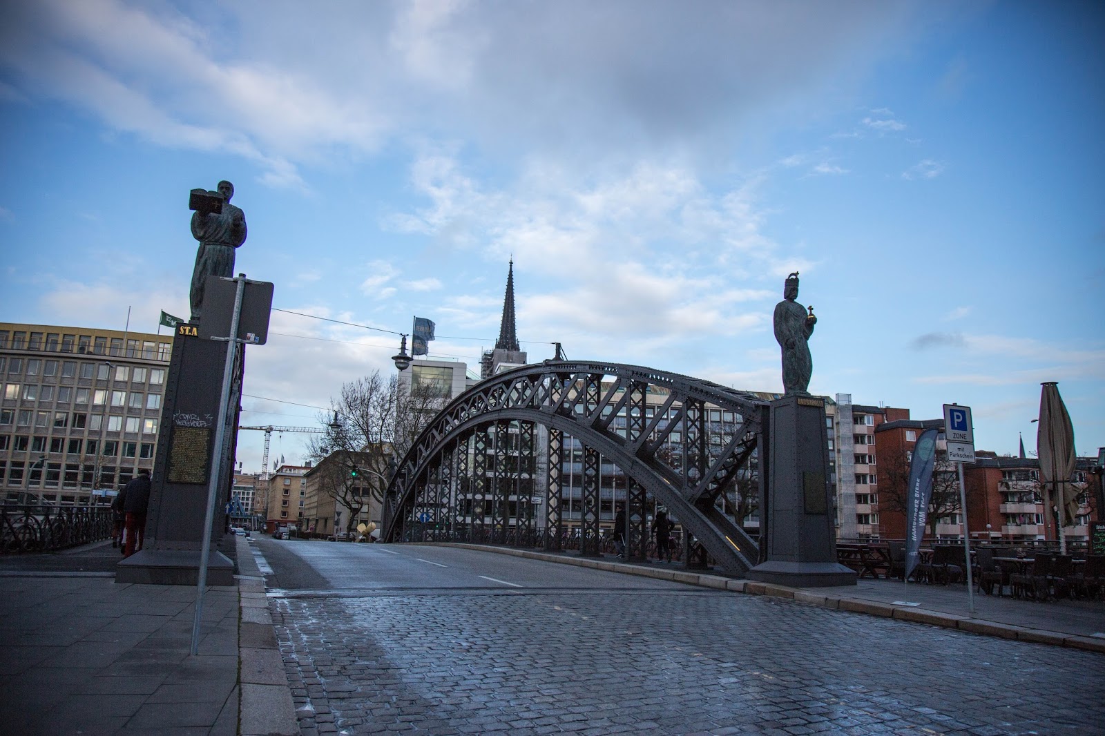 Apenas salimos del Miniatur Wunderland utilizamos el Brooksbrücke. Este hermoso puente que vemos en la imagen de arriba. El puente data de 1587 pero la versión que vemos ahora es del final de 1800. En él se ven imágenes en las cuatro puntas. Una de ellas es de Barbarossa.
