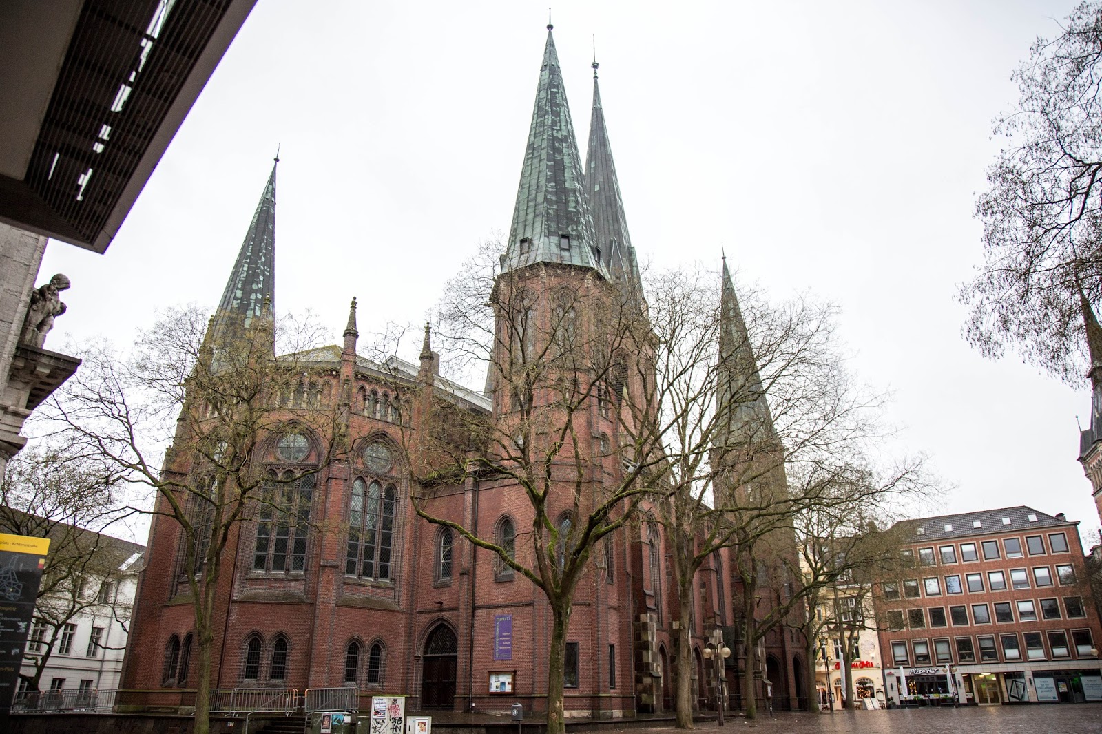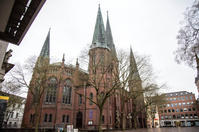 El edificio se abajo corresponde a la Iglesia St. Lamberti. Es una iglesia luterana que data del siglo 13. La torre más alta cuenta con 86 metros de altura por lo que corresponde al edificio más alto de la ciudad.