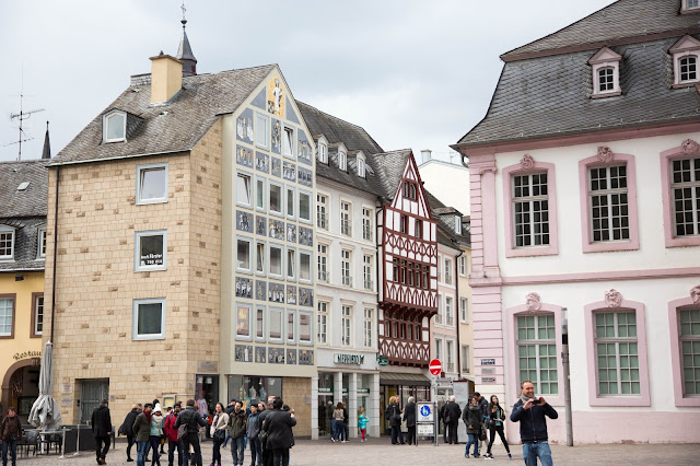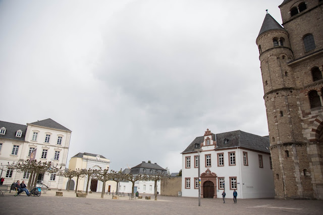 Llegamos a la plaza y nos vemos rodeados por hermosos edificios de distintas épocas y con preciosos detalles. En su mayoría religiosos debido a la influencia grande la iglesia Catolica en su historia. En Trier los arzobispados y la condición de ser episcopal fue muy importante para establecerla como un centro de comercio en la época. Esta condición fue modificada en varios periodos debido a los cambios políticos, sin embargo sigue siendo sede episcopal y en Trier se encuentra la Universidad Teológica de Trier.