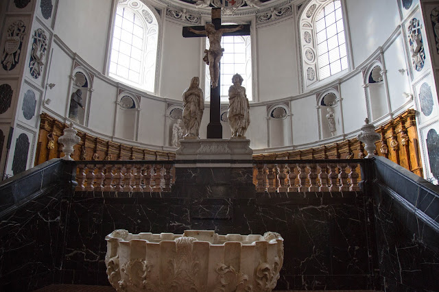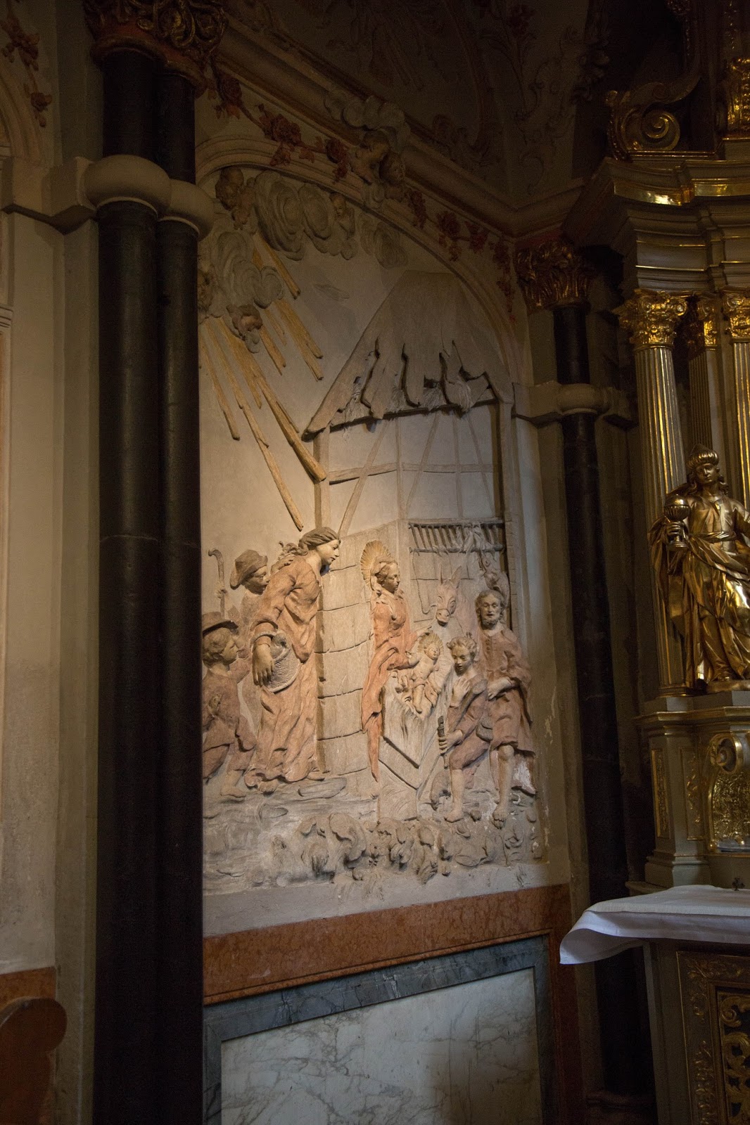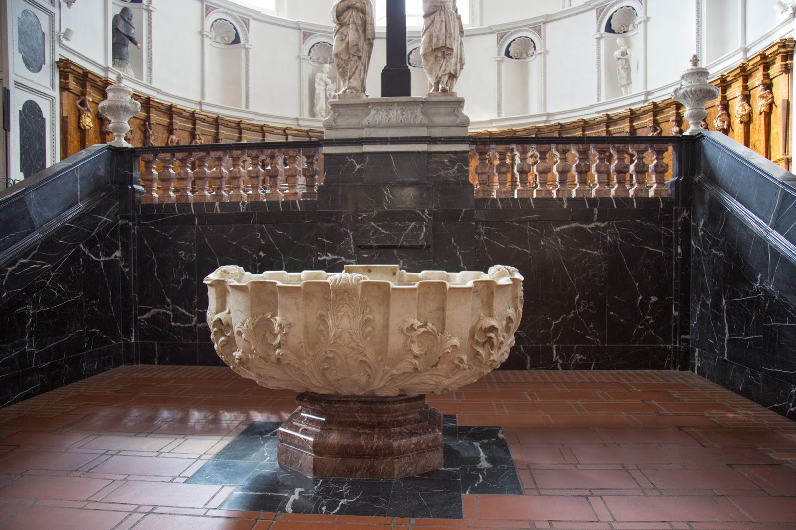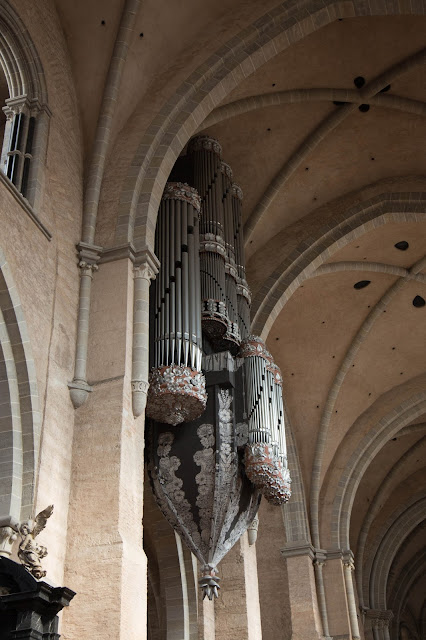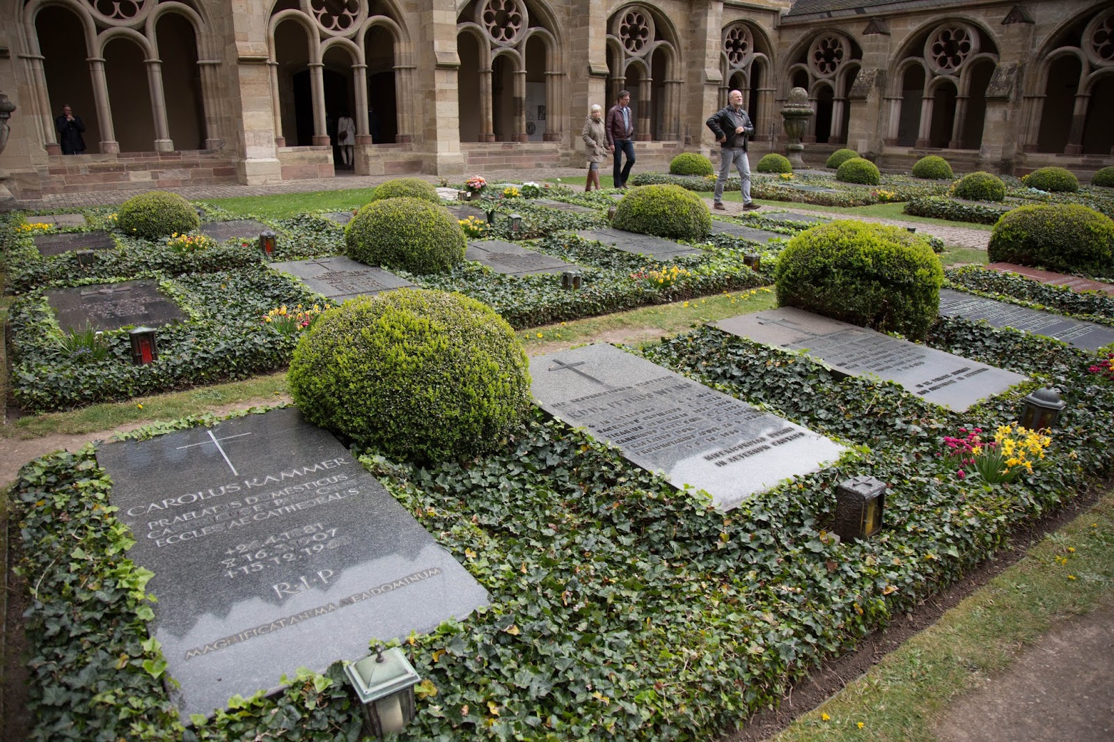 Por dentro, el trabajo artesanal de la madera y el mármol es impactante. Salimos por una e las puerta laterales y nos encontramos en un patio que forma parte del antiguo monasterio. En el jardín se encuentran tumbas de los que fueron obispos o padres. Este patio se conectaba con la Iglesia de Nuestra Señora. También aquí encontramos carteles explicativos de la historia del edificio de la catedral, desde su construcción así como las modificaciones y reconstrucciones a los que se vio afectado.