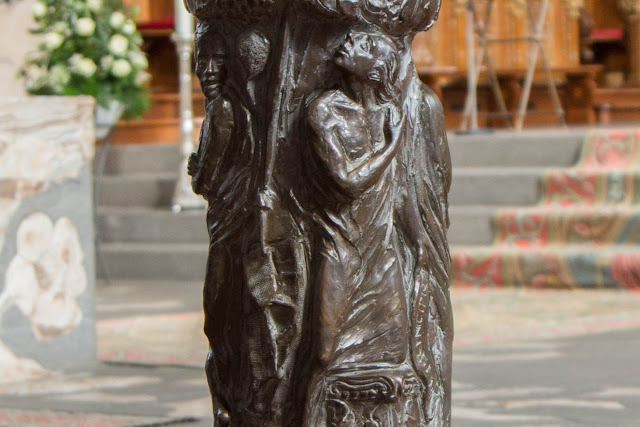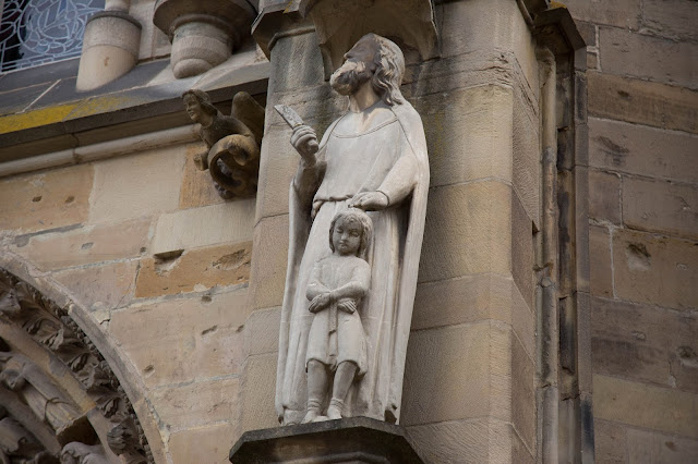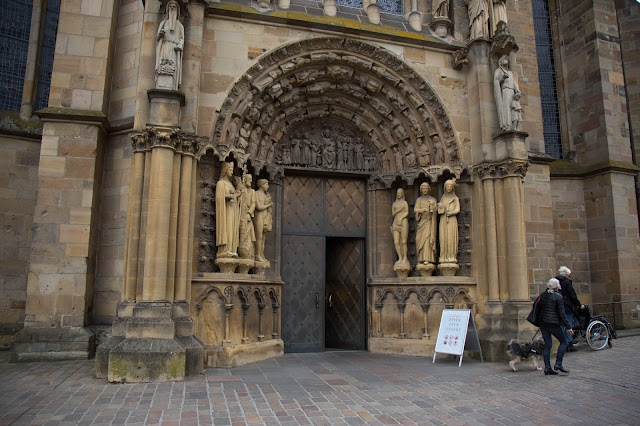 Esta es la entrada a la Iglesia de Nuestra Señora. Podemos reconocer la entrada gótica con figuras a ambos lados y en el arco.