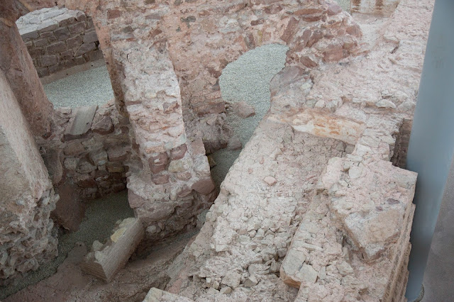 A pocos metros vemos este inmenso edificio de vidrio. No es sino una protección a las termas romanas más recientemente descubiertas. Lo fueron durante una excavaciones en 1994.