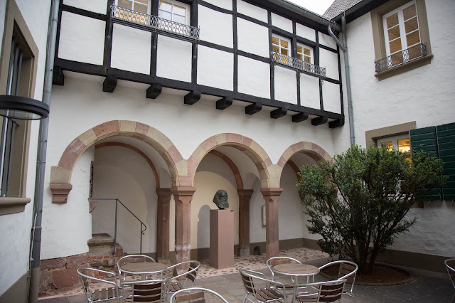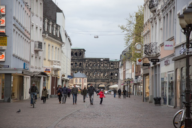 La plaza en la que se encuentran se llama Viehmarktplatz. Y las lineas y diferencias de color que se ven en suelo en la parte de la plaza (afuera) corresponden al antiguo cardo romano que consistía en la red de calles en la época romana.