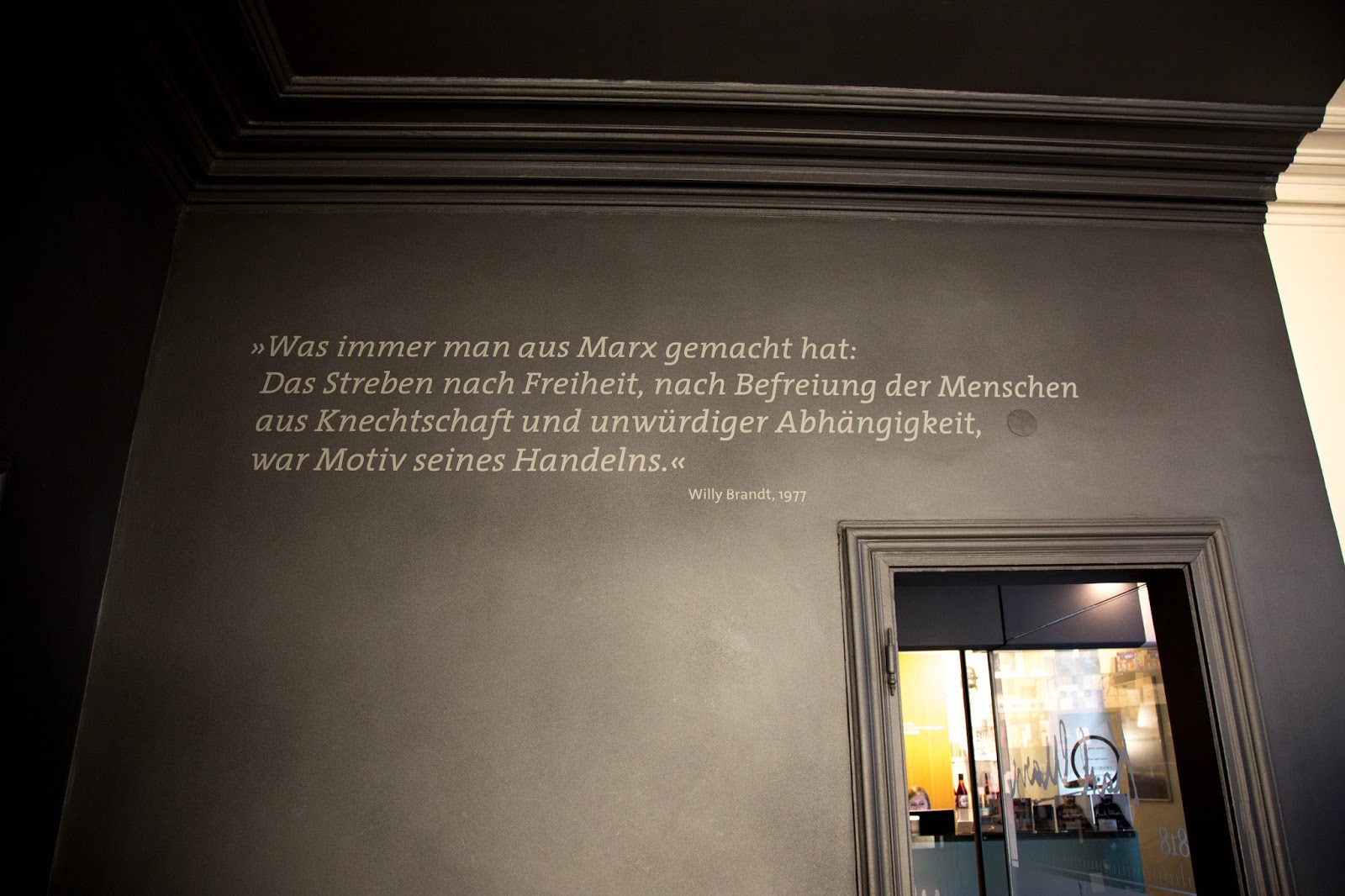 La visita a este museo requiere de tiempo. Hay mucha información y esta interesantemente explicada. Por supuesto en el museo no se habla de los chismes, como esos que dicen que Karl Marx vivió del dinero de otros durante sus 64 años. Que se pasaba en las tabernas hasta amanecer y dormía durante el dia. Dicen que llevaba una vida aburguesada de clase media alta como la que tanto criticaba. También hablan de que tenia MUY mal aseo personal, y que su famosa barba y gran melena distaban de ser moda de la época y eran un ejemplo de su poco cuidado e higiene personal. Su familia en Trier, su padre abogado se encargó de mantenerlo y luego de dejarle una herencia. La esposa de Marx, Jenny von Westphalen, era hija de un barón prusiano que también aportó a la canasta familiar. Se dice que Marx vivía prestando dinero, tanto de amigos como de usureros comunes y que su salvación fue su fuerte amistad con Engels quien lo mantuvo cuando ya no tenía dinero.
