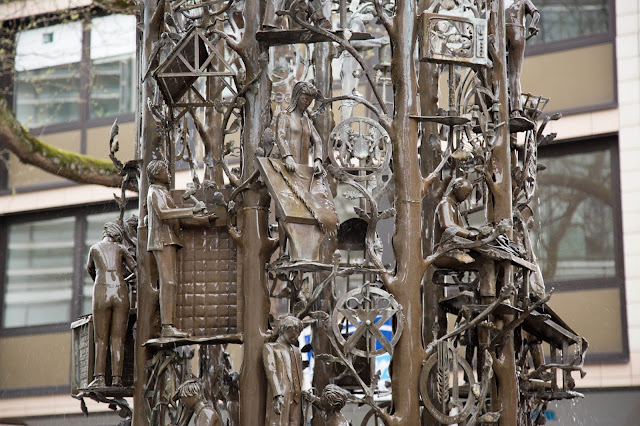 A pocos metros una BELLISIMA fuente y es sin duda mi preferida de este viaje. Esta fuente fue un regalo de los artesanos a la ciudad. Entregada en 1984 en su aniversario 2000. Les invito a que hagan zoom y observen los miles de detalles de esta preciosa fuente. Se llama Der Handwerkbrunnen y fue realizada por Klaus Appel.