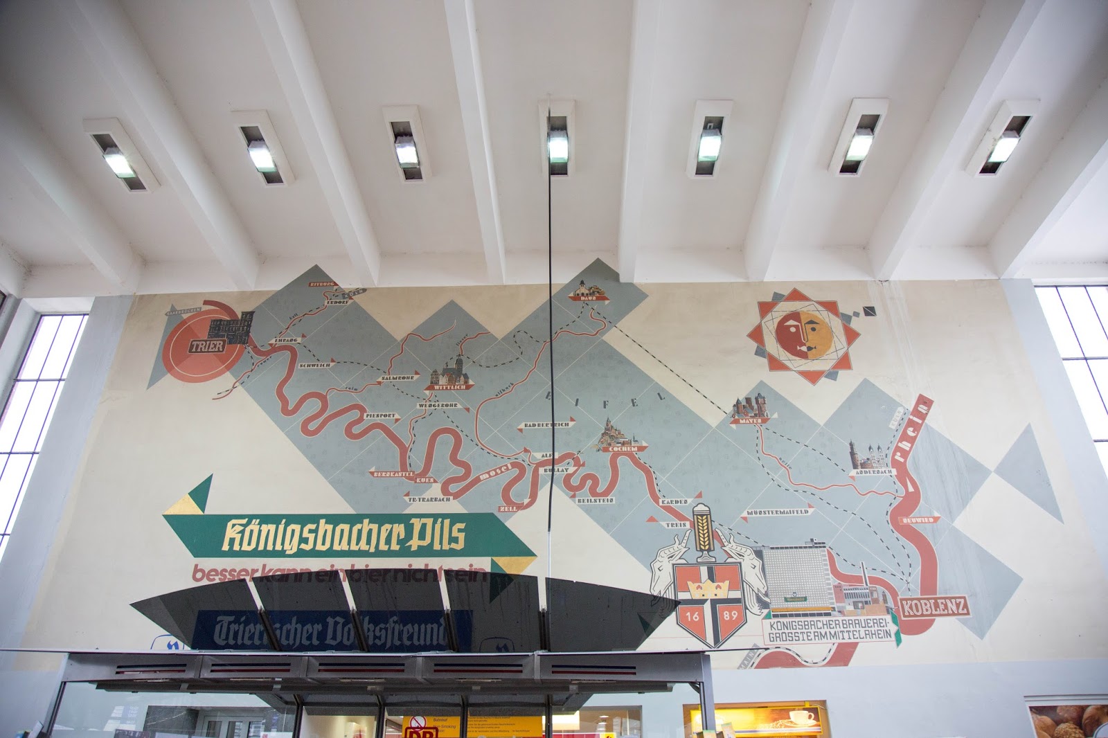 Llegamos a la estación y vemos mapas pintados en las paredes. Les dejamos imágenes de los mismos y si quieren revisitar Koblenz, aqui les dejamos el link.