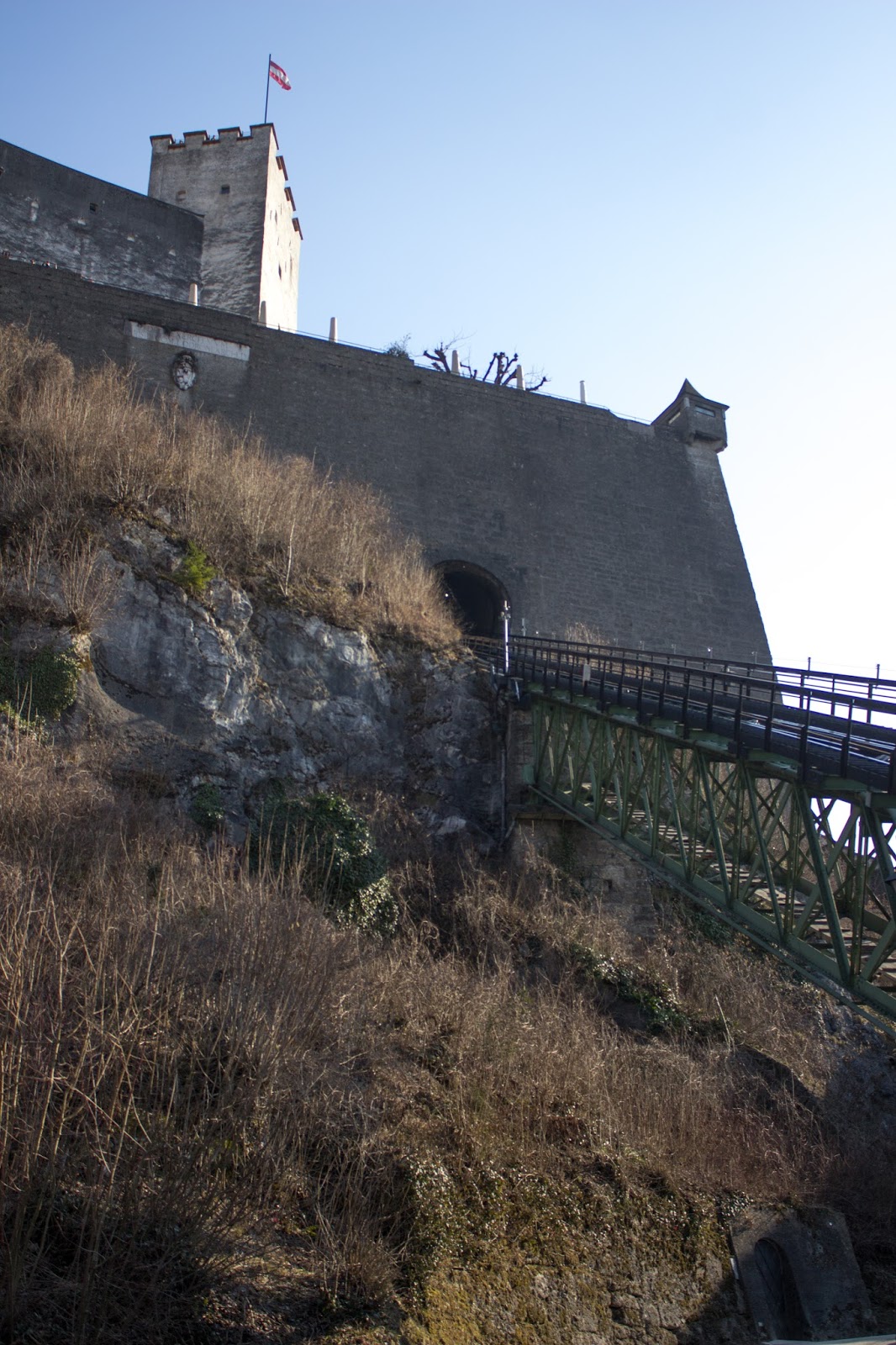 Continuamos subiendo, camino a la fortaleza, pero antes entramos a este cementerio, el cementerio de St. Peter donde se rodó la escena de huida de la película The Sound of Music. Aquí, la capilla de Margaret que pocas veces se encuentra abierta al publico. Desde aquí podemos ver de cerca parte de las paredes de la montaña sobre la que se encuentra la fortaleza.