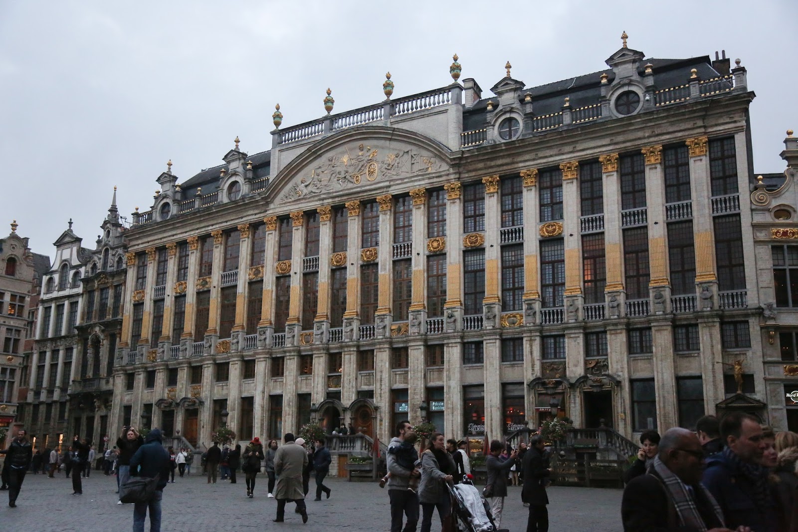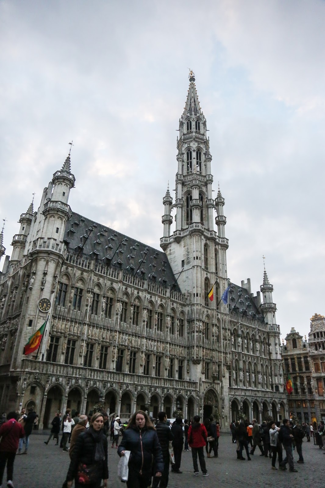 Vamos a la plaza central. La Grande Place es otro punto histórico. Aquí, el ayuntamiento, la casa del rey y la casa de los gremios forman parte de los edificios más bellos de la ciudad. La plaza es llamativamente pequeña lo que dificultó tomar fotos con la lente que tenia. Sumado al oscurisimo y lluvioso día, pueden estar seguros que las fotos no hacen justicia.