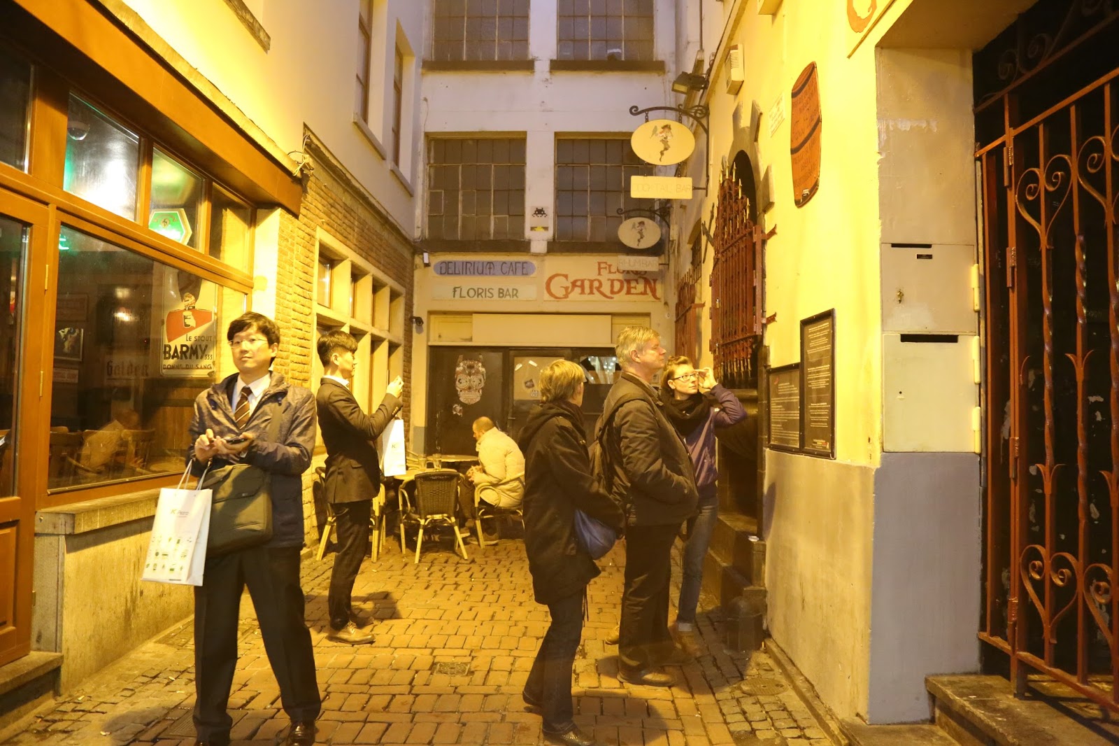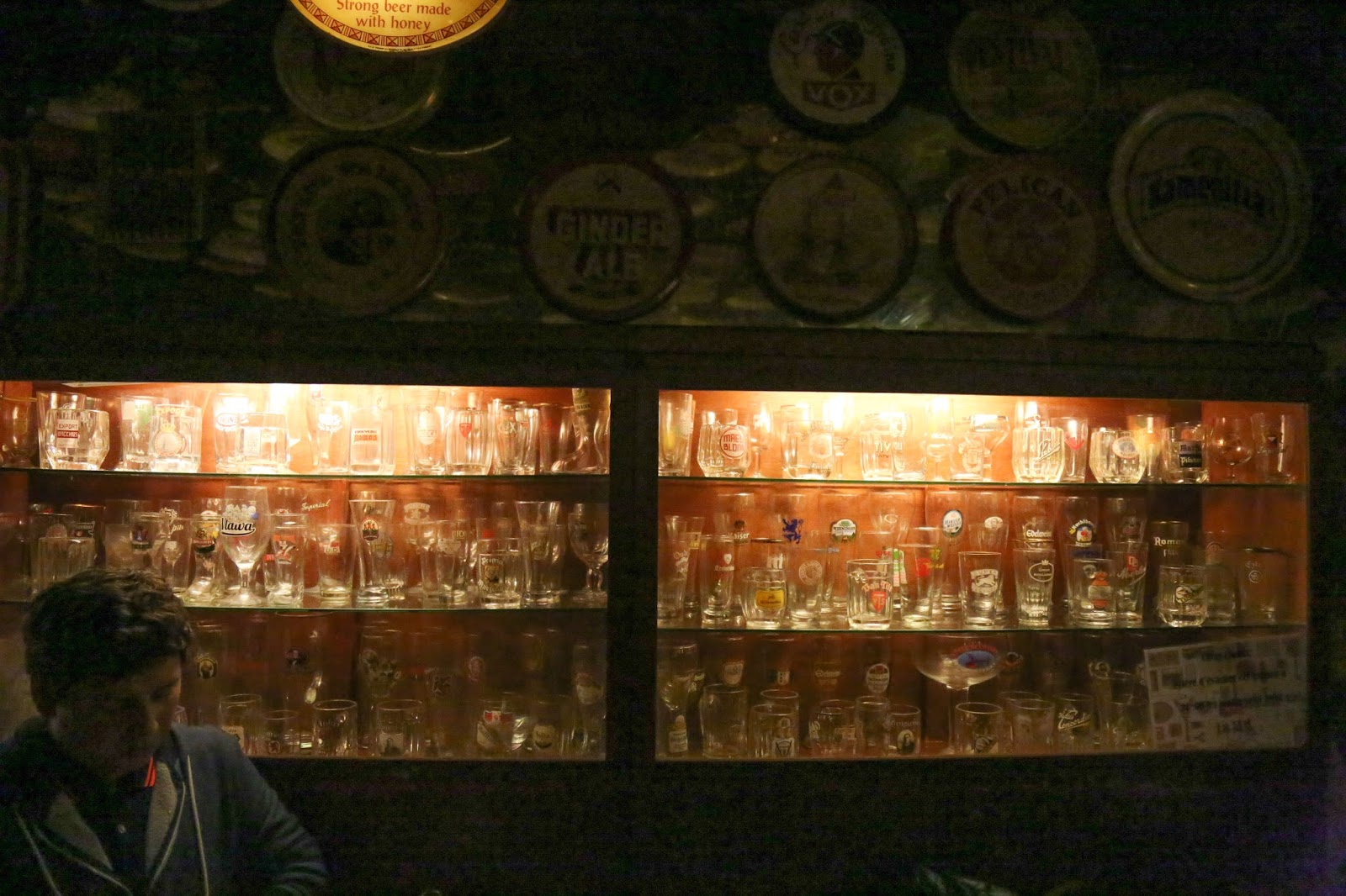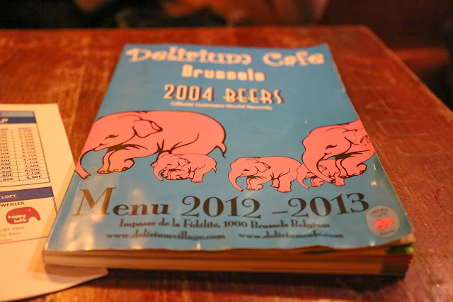 Para despedirnos brindamos con unas cervezas belgas en el sótano de Delirium Tremens. Haciendo honor a su variedad el local esta ornamentado con carteles, vasos y todo lo que puedan imaginar de miles de marcas de cervezas del mundo.