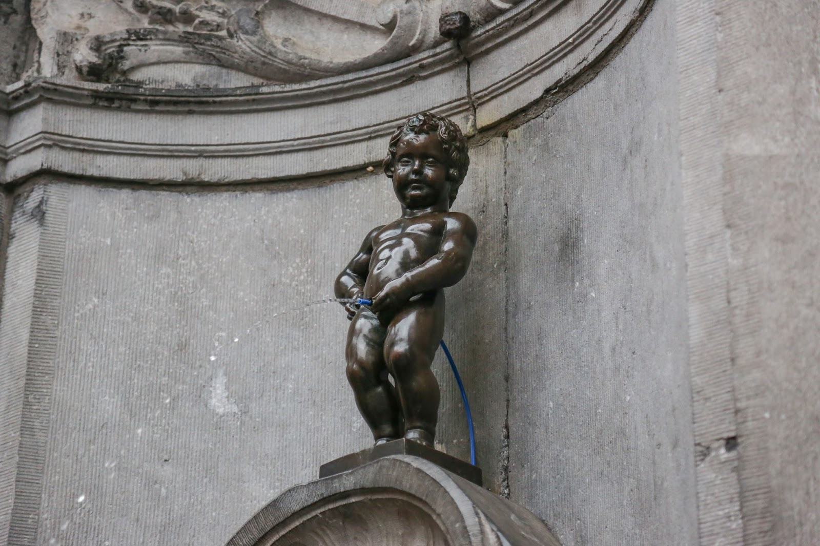 La version original de este niño se cree es de 1311, pero la version actual es de 1619 obra de François Duquesnoy. Sobre su origen hay tantas historias como puedan imaginar. Algunos cuentan que un niño se perdió y cuando fue encontrado estaba haciendo pis, por lo que en celebración ser encontrado, sus padres hicieron un monumento. Otros hablan de un niño que salvo una batalla apagando una mecha con su pis y otros de uno travieso que sobre un árbol hacia pis sobre soldados enemigos.