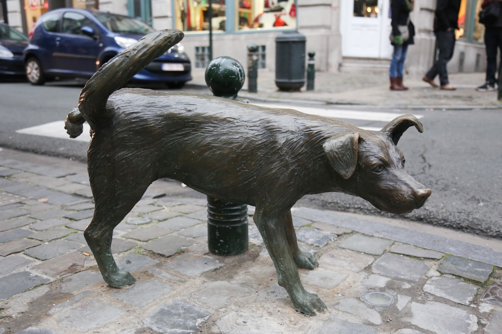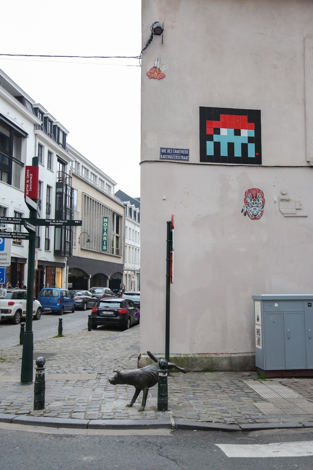 Como pueden ver, este perro no tuvo la popularidad del niño. Pasa desapercibido y muchos ni si quiera lo notan. La mayoría de los ciudadanos de Bruselas la odia pero esto ya es cuestión de gustos. (En la pared pueden ver una obra de Invader de quien hablamos en el post de Estrasburgo)