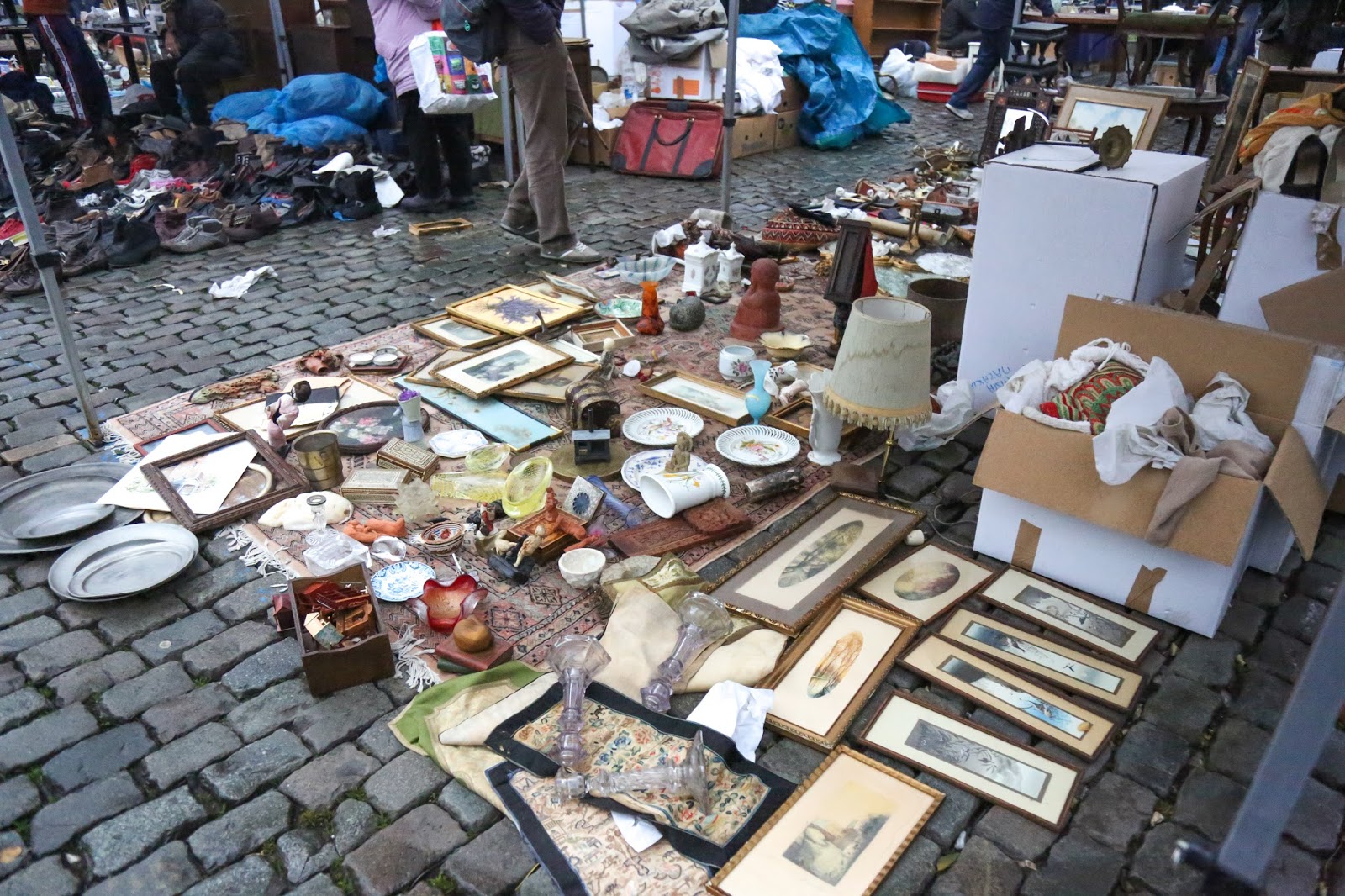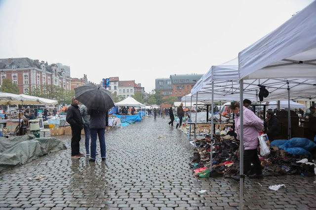 Antes de empezar uno de los mejores recorridos que hice hasta ahora, pasamos por el mercado de Pulgas en un adorable barrio de Bruselas. El mercado en la Place du Jue de Balle es pequeño pero variado. A mi, que soy amante de los mercados de pulgas, me enamoró. Además, está rodeado de varias tiendas de ropas y muebles antiguos. El día que lo visitamos estaba lloviendo así que, para alegría de mi esposo, no nos quedamos demasiado tiempo.