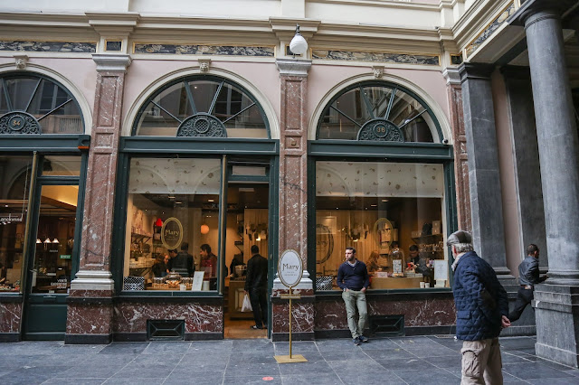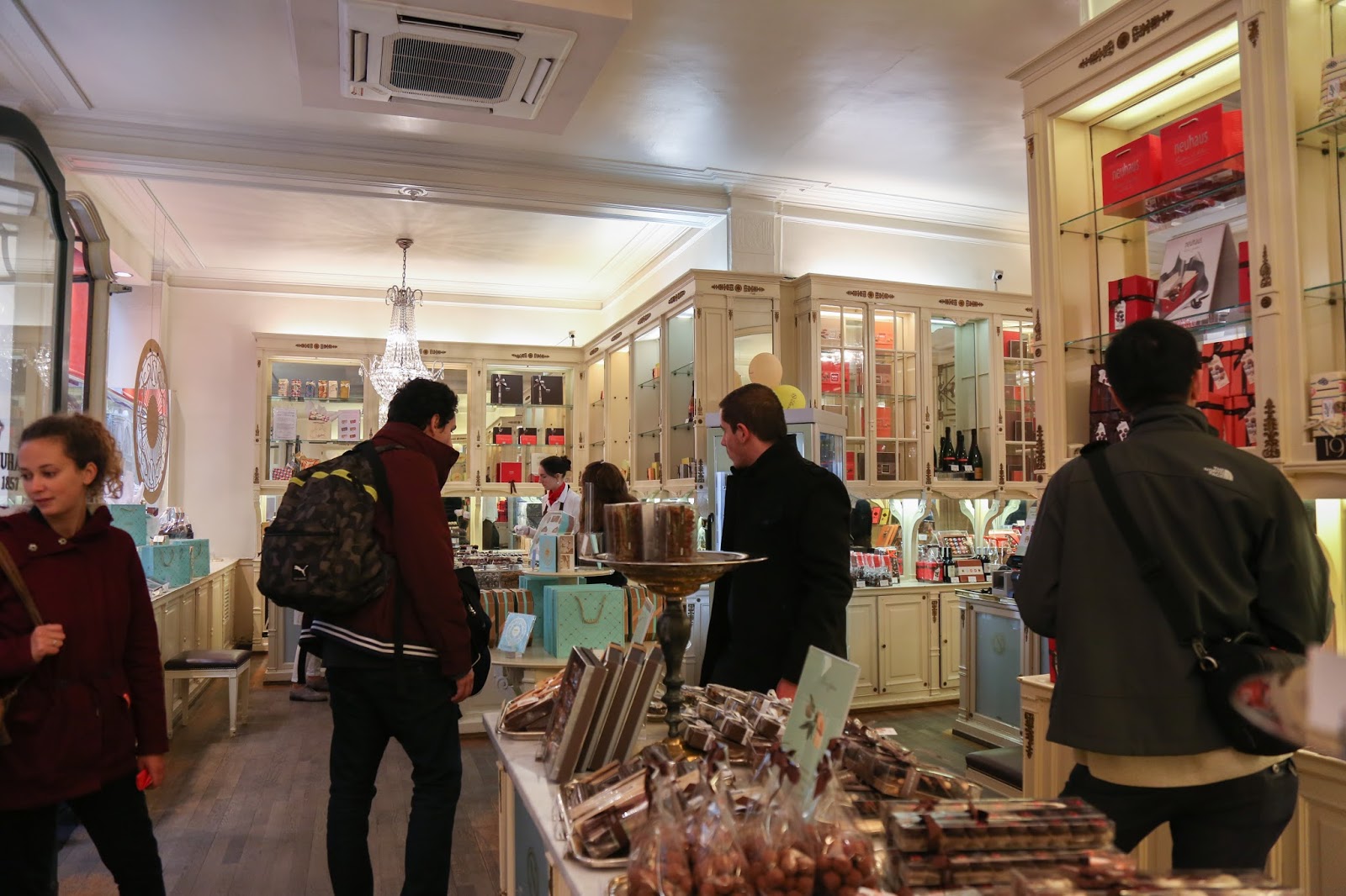 Antes de continuar debo contar que en la galeria se encuentran varias chocolaterías, siendo la más antigua y tradicional Neuhaus. Aquí está no solo la primera tienda, la antigua farmacia con todavía los muebles, sino que también están las chocolateros que cuentan con el sello oficial de Proveedoras de la Casa Real. Hay chocolates de distintos estilos y distintos precios.