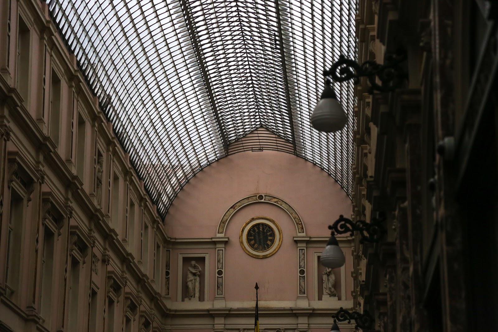 Ya vamos al punto de encuentro para nuestro Tour del Chocolate. Donde? En las Galerias Reales de St. Hubert. Estas galerías fueron construidas antes que otras famosas como la de Milan o San Petersburgo. La idea era que la realeza pueda realizar sus compras protegidos de la lluvia. Ademas de bellísimas, aquí es donde nace todo el tema del chocolate belga.