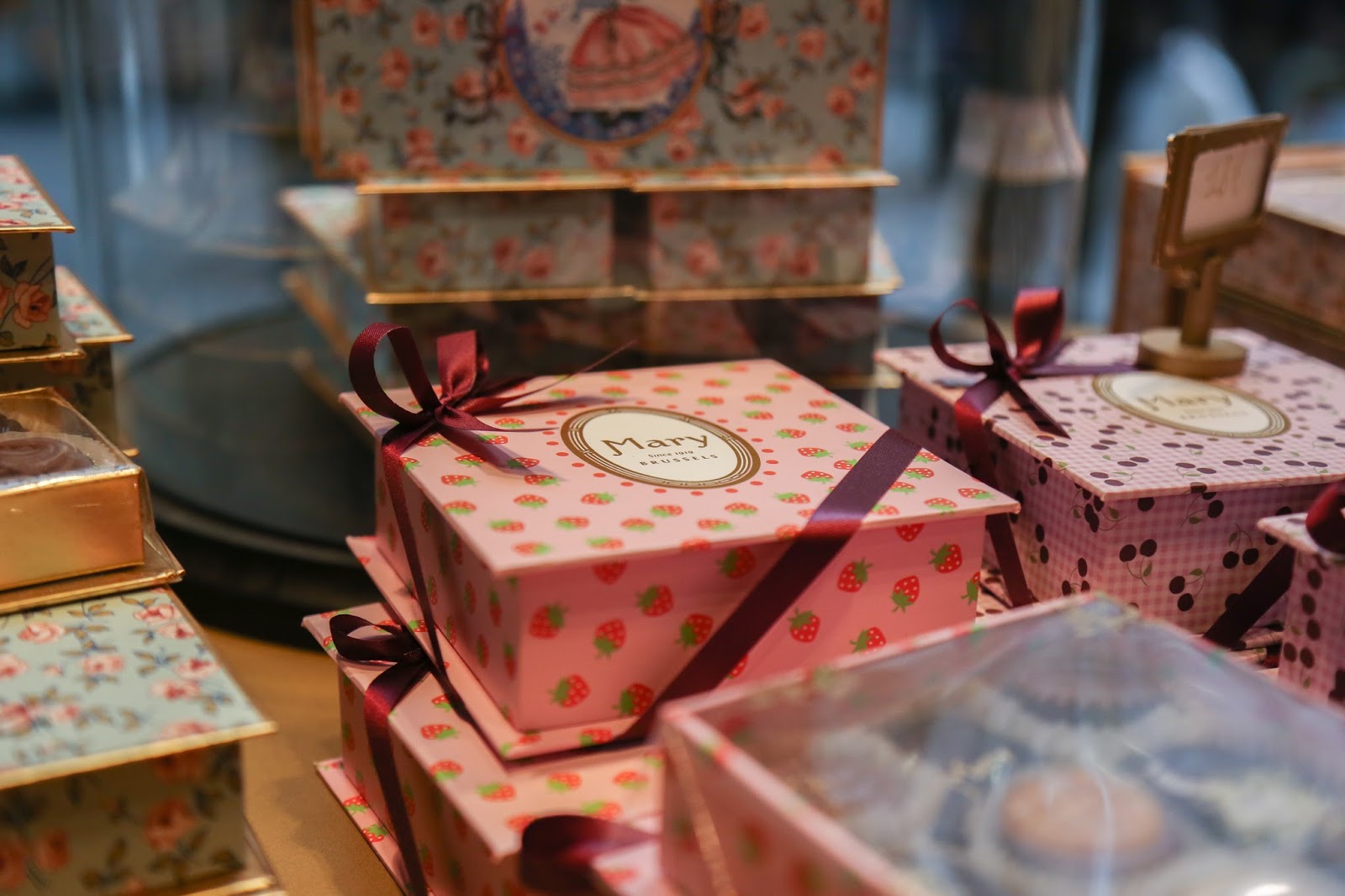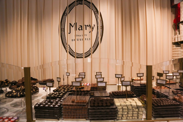 Mary nos sorprende con un femenino estilo. Todo esta delicadamente adornado con tonos rosas y flores. Mary Delluc fue la primera chocolatera mujer y con su ingenio logró conquistar a la casa real. Se ubicó estratégicamente en uno de los caminos diarios del rey. Como era muy cuidadosa y detallista con la producción sus productos eran de una calidad excepcional, sabor que el rey no pudo resistir. Tiene el sello de calidad real desde 1942 pero produce chocolates desde 1919. Con solo 11 tiendas de las cuales solo una fuera de Bélgica, en Estados Unidos, Mary mantiene la calidad de sus productos supervisando todo el trabajo en sus laboratorios para que no se pierda ninguna detalle. Ni en el sabor ni en el diseño.