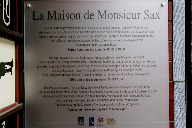 Antes de terminar este corto post, nos dirigimos a la casa del Adolphe Sax la cual es ahora un museo. Aquí, en esta cuadra es donde los elementos referentes al saxo llegan a su nivel más alto. Desde esculturas hasta pequeñas letras en el piso.
