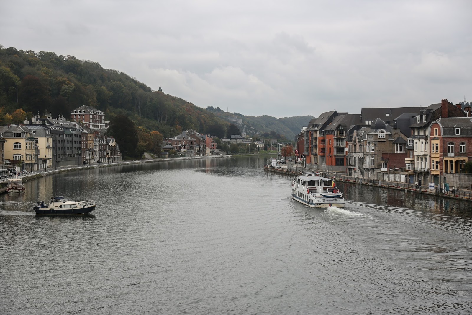 Las montañas que vemos son las Ardenas y el rio es el Mosa. Ambos forman el encuadre perfecto para los edificios de la ciudad.