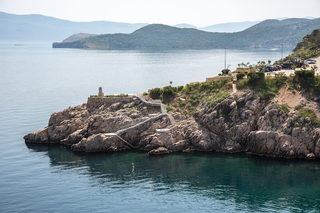 Aunque parezca obvio, tengo que mencionar que para pasar a la enorme isla de Krk, debemos cruzar un puente. Este puente es uno de los puente de cemento más largos del mundo. Fue construido en 1980 y es fácilmente reconocible por sus dos arcos (en el próximo post lo verán más claramanente) en sus 1.400m de longitud.