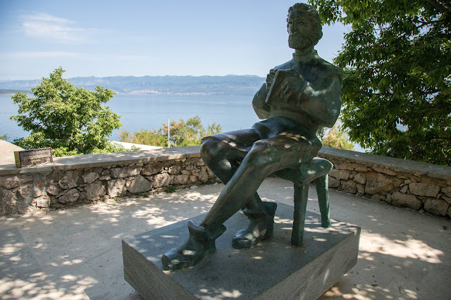 La estatua que vemos abajo la estatua de Blaž Baromic. Nacido en Vrbnik, es famoso por ser calígrafo y fundador de la impresión glagolitica croata