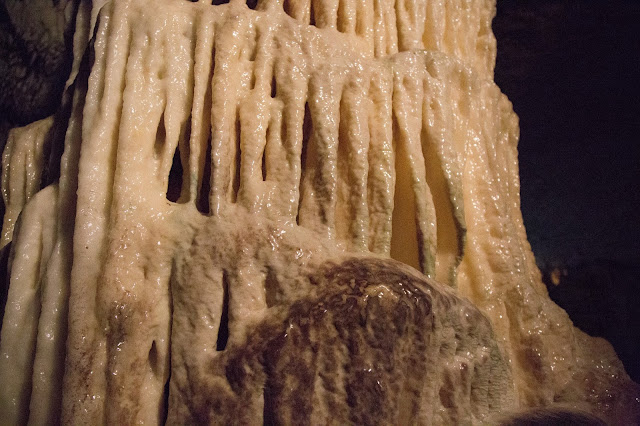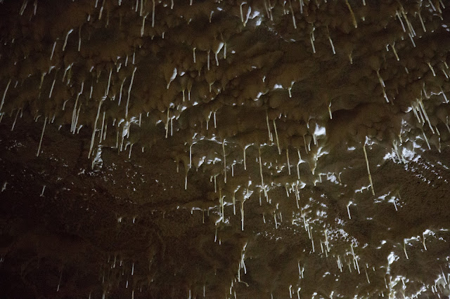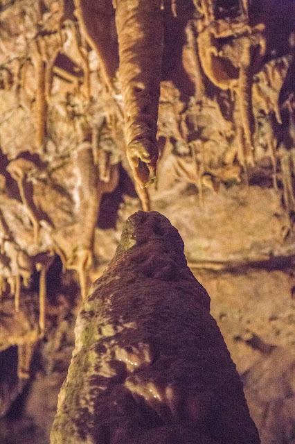 Aqui vemos como el tiempo tiene otro valor. Mientras caen las gotas podemos ver que para que una estalactita y una estalagmita se unan, pueden pasar cientos de años.