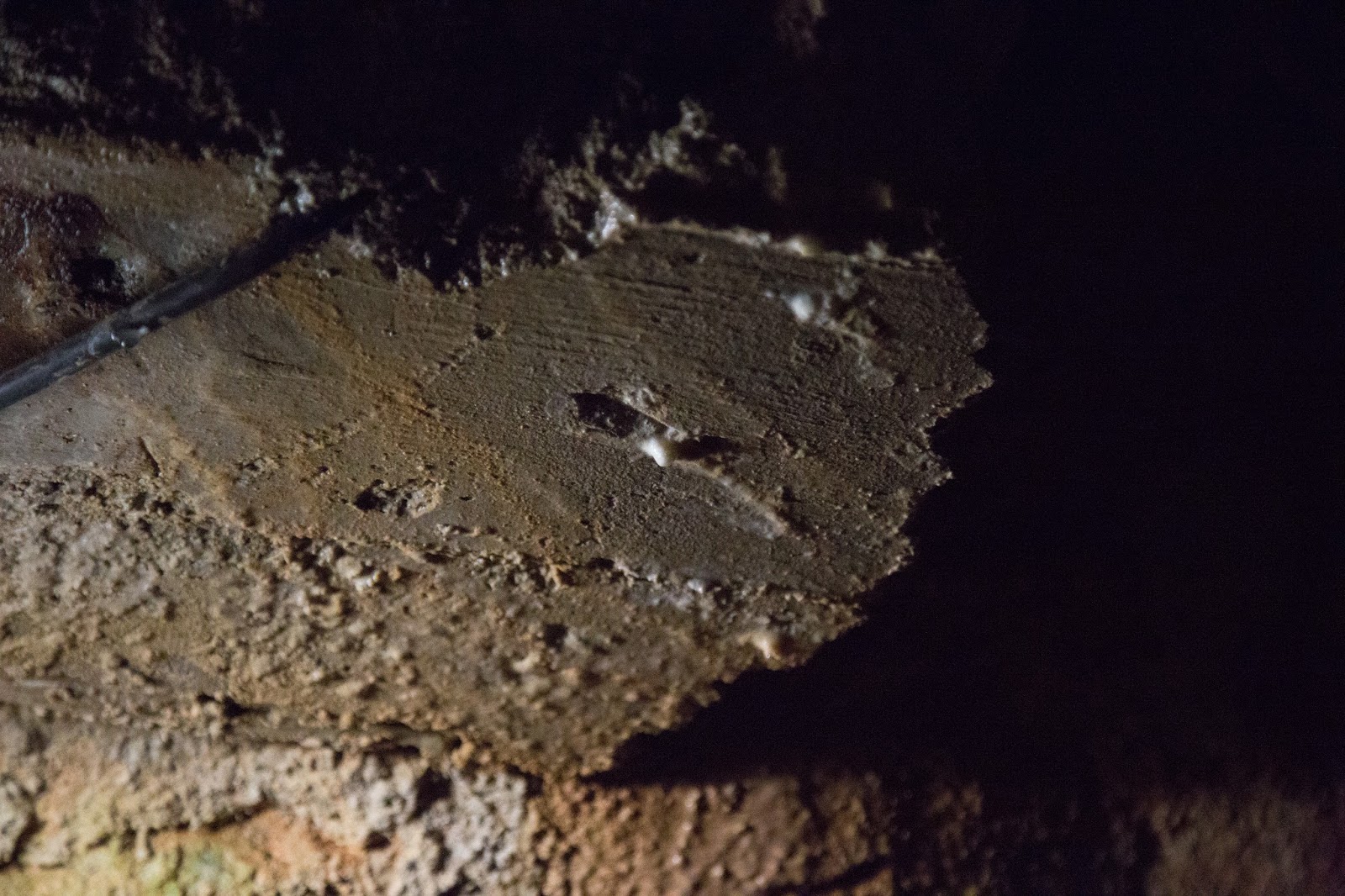 Abajo vemos un «palo», el cual los eslovenos entre bromas dicen que es lo que sostiene a toda la cueva y que cuando este caiga toda la cueva se desmorona.