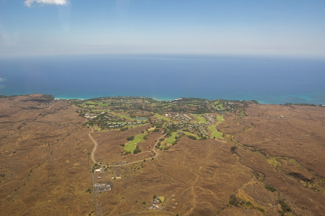 Lo primero que vemos, en la foto de abajo, y lo último que veremos al regresar va a ser Waikiloa. Desde arriba es aun más fácil distinguir este «oasis».