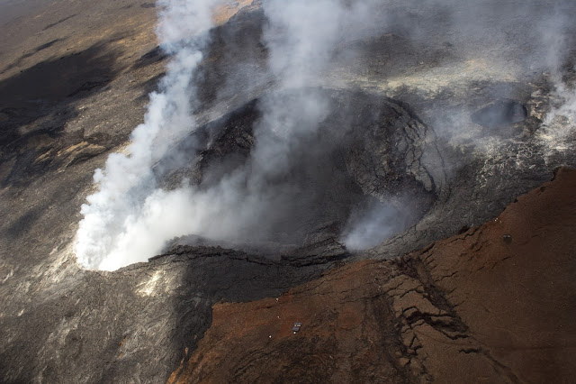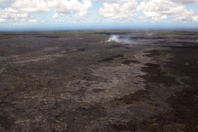 Noten el cambio de color. La ruta tiene pocos años por eso se construyo sobre lava vieja. Nos estamos acercando al Kilauea. Este es el volcán que se encuentra activo hace más tiempo en el mundo. Esta activo desde 1983, totalmente monitorizado. Cuando se conoce que va a tener actividad alta, gente de todo el mundo vuela para el espectáculo. La verdad que es de esos eventos que te aceleran el corazón. La naturaleza es lo más maravilloso que existe!