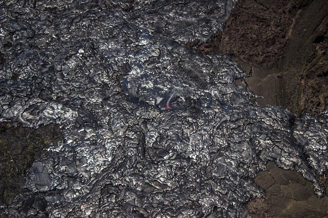 En la foto de abajo pueden ver el mar y las huellas de la lava de cuando llegó al agua. Por la oscuridad del suelo se puede saber cuan nueva o vieja es la huella.