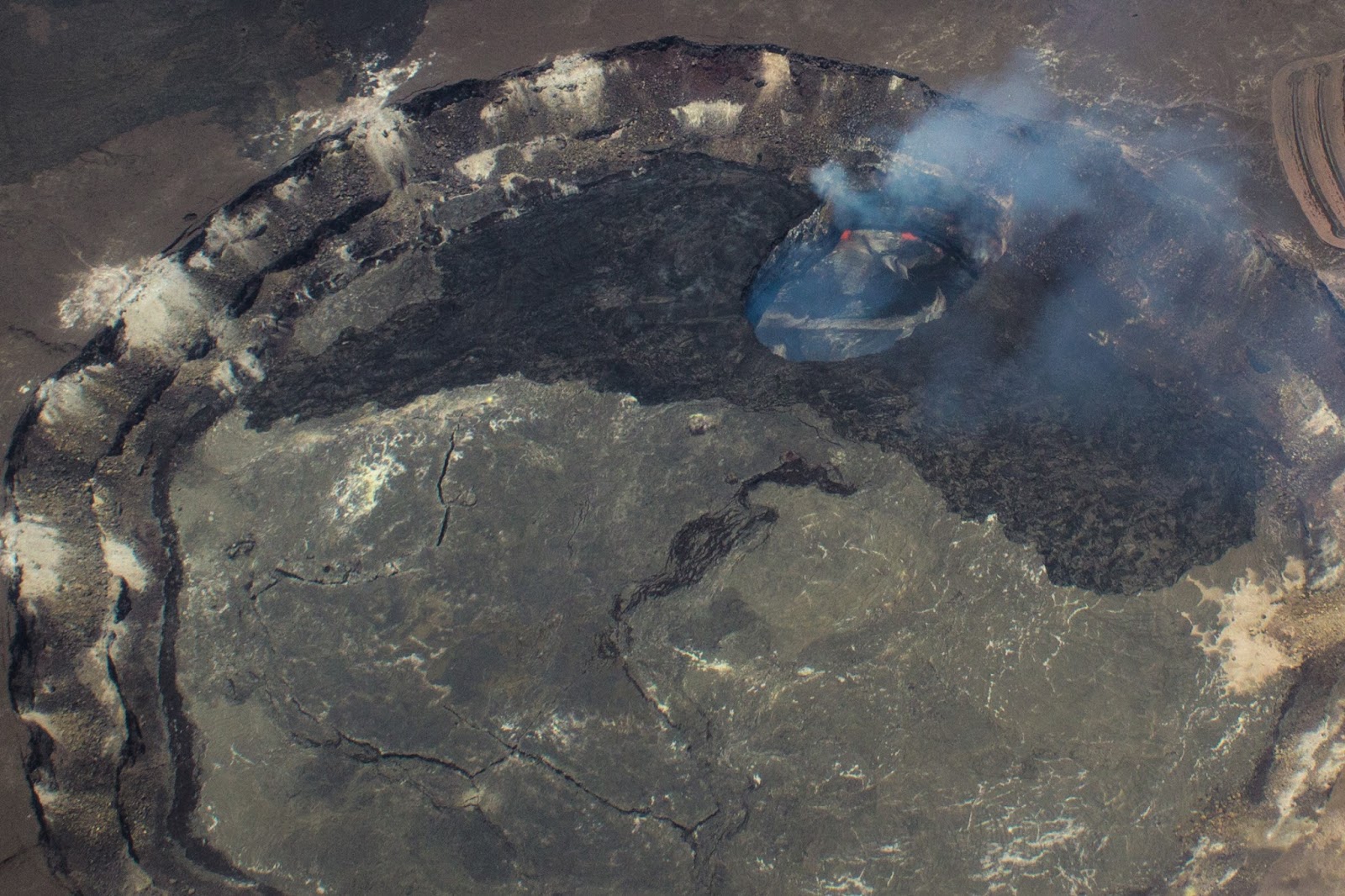 El volcan tiene cerca de 600.000 años de antigüedad pero salió a la superficie del mar hace solo 100.000 por ello se le considera entre los más jóvenes. Su nombre es hawaiano para «el que mucho escupe» o algo parecido. Obviamente se refiere a su constante actividad y salida de lava.