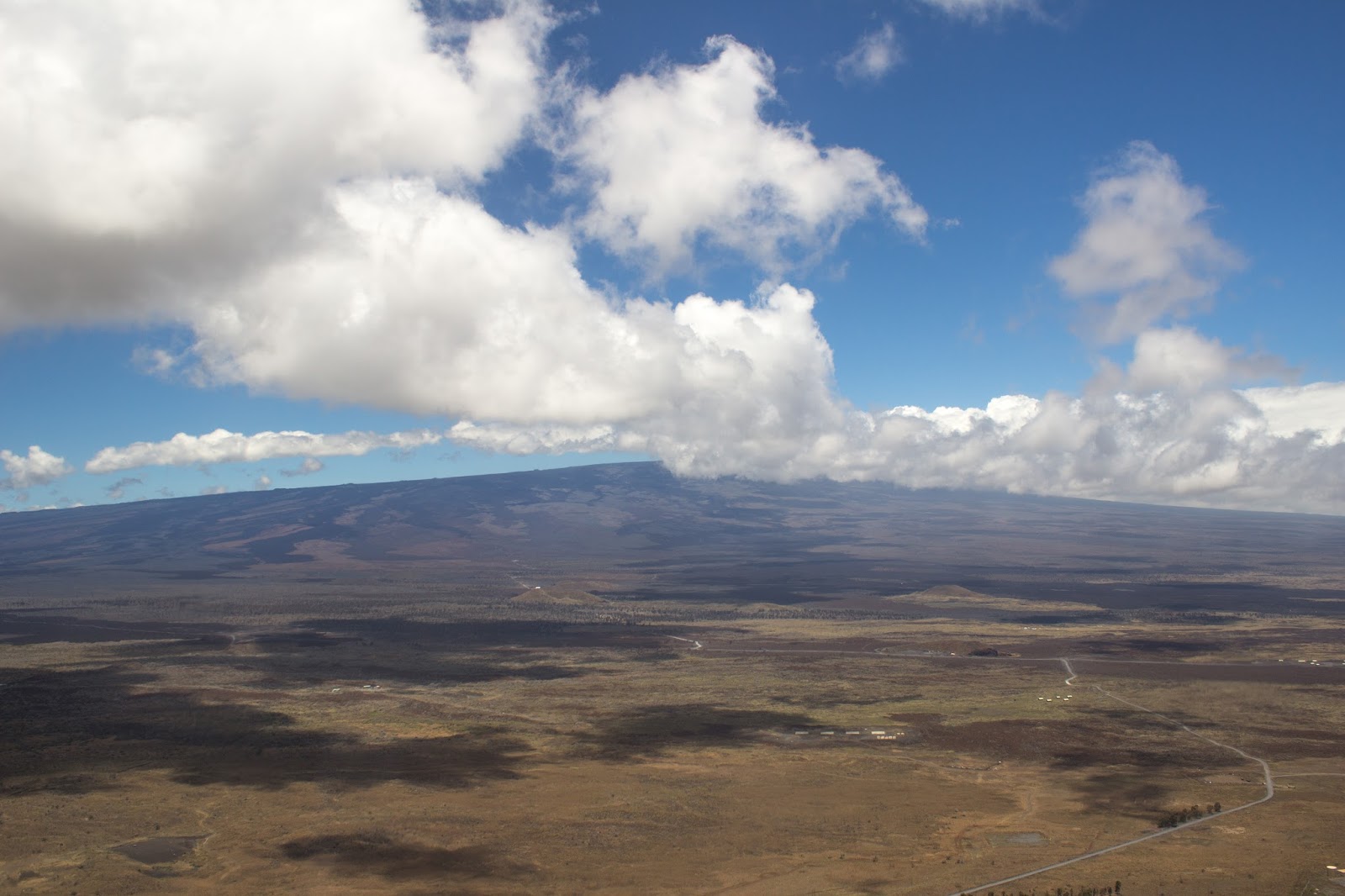 Eso que vemos al fondo es el Mauna Loa. Este INMENSO volcán es el más grande de la Tierra. Toma 85% del territorio de Hawai’i. Pero es el Mauna Kea el que mencionamos en otro post, que es considerada la montaña más alta del mundo. Sí, supera al Everest pues se tiene en cuenta que su base se encuentra bajo el mar. Como pueden ver las nubes son abundantes. Por ello, el Mauna Kea tiene valor para los observatorios astronómicos al encontrarse por encima de las nubes. Entre las curiosidades tenemos que el Mauna Kea es también hogar de glaciares de miles de años de antigüedad. Ambos son tan altos que en invierno se puede ver nieve en sus puntas. Mauna Kea inclusive significa Montaña Blanca. Pero no hablaremos más de él, mejor disfrutemos del Mauna Loa. Mauna Loa es hawaiano y significa Montaña Larga. A simple vista se puede entender el nombre.