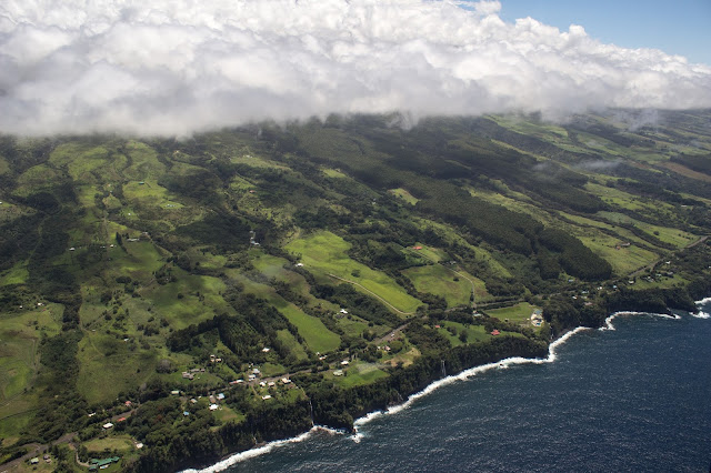 Como pueden ver Hilo está mas poblada. Tiene más de 50mil habitantes. Pero no es por eso que venimos aquí. Venimos porque aquí veremos eso que muestran en las películas. Eso que parece mentira. Vamos a ver las altísimas cascadas y nos meteremos en el valle de montañas verdes. Con un promedio de 275 días de lluvia al año podemos entender tanto verde.