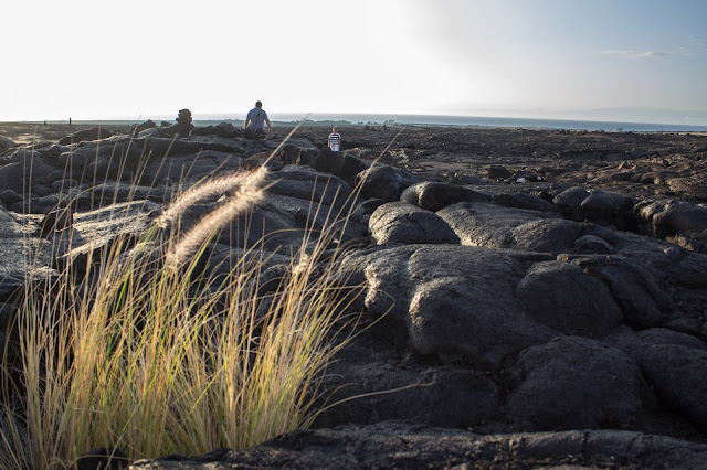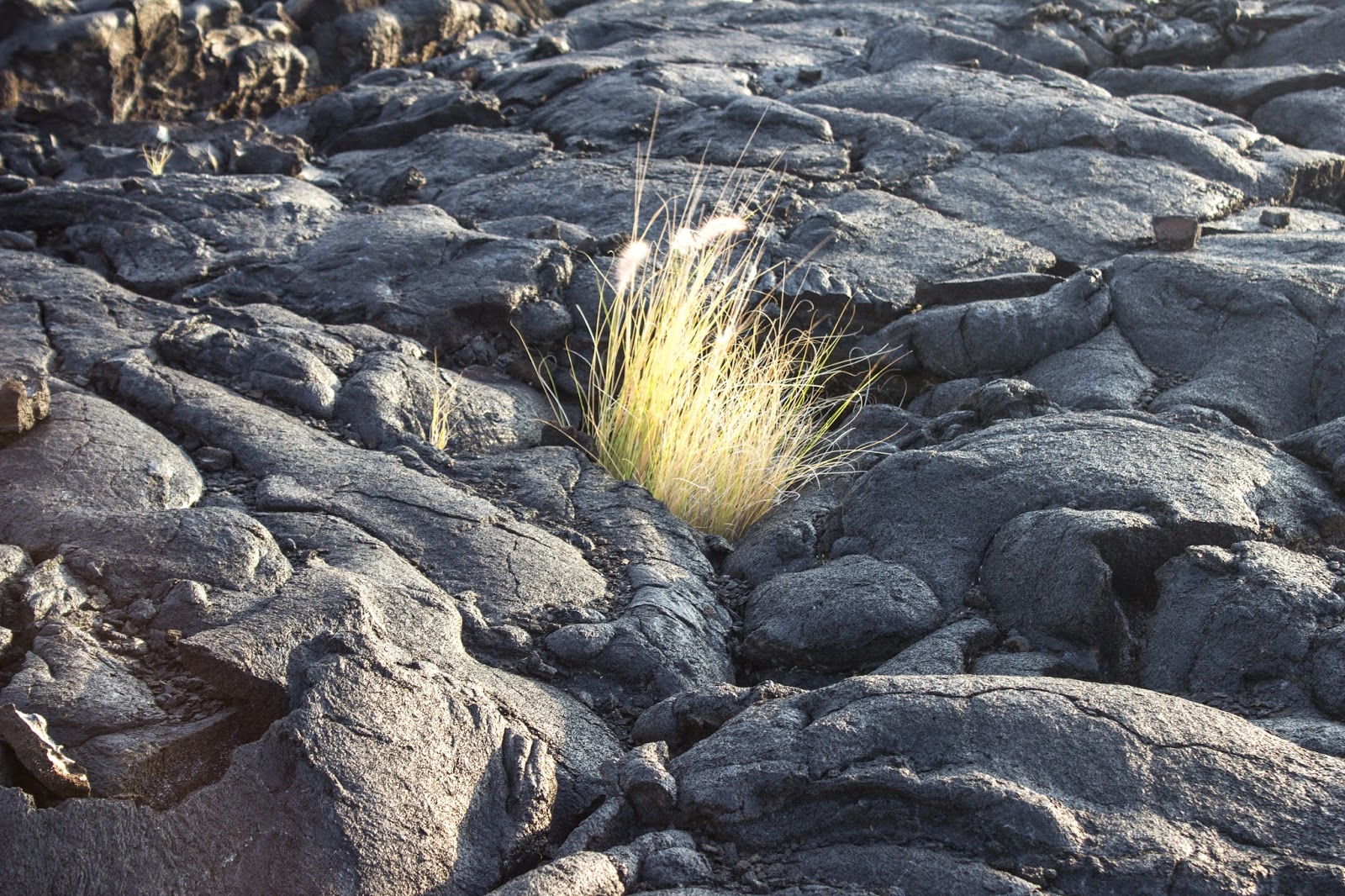 Lava, planta, mar al fondo…