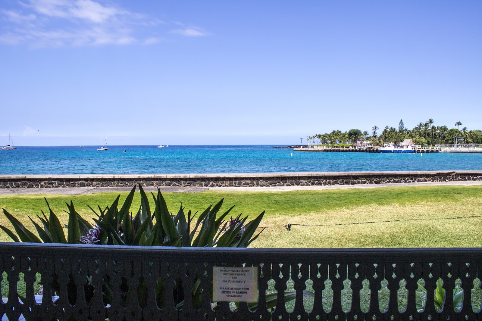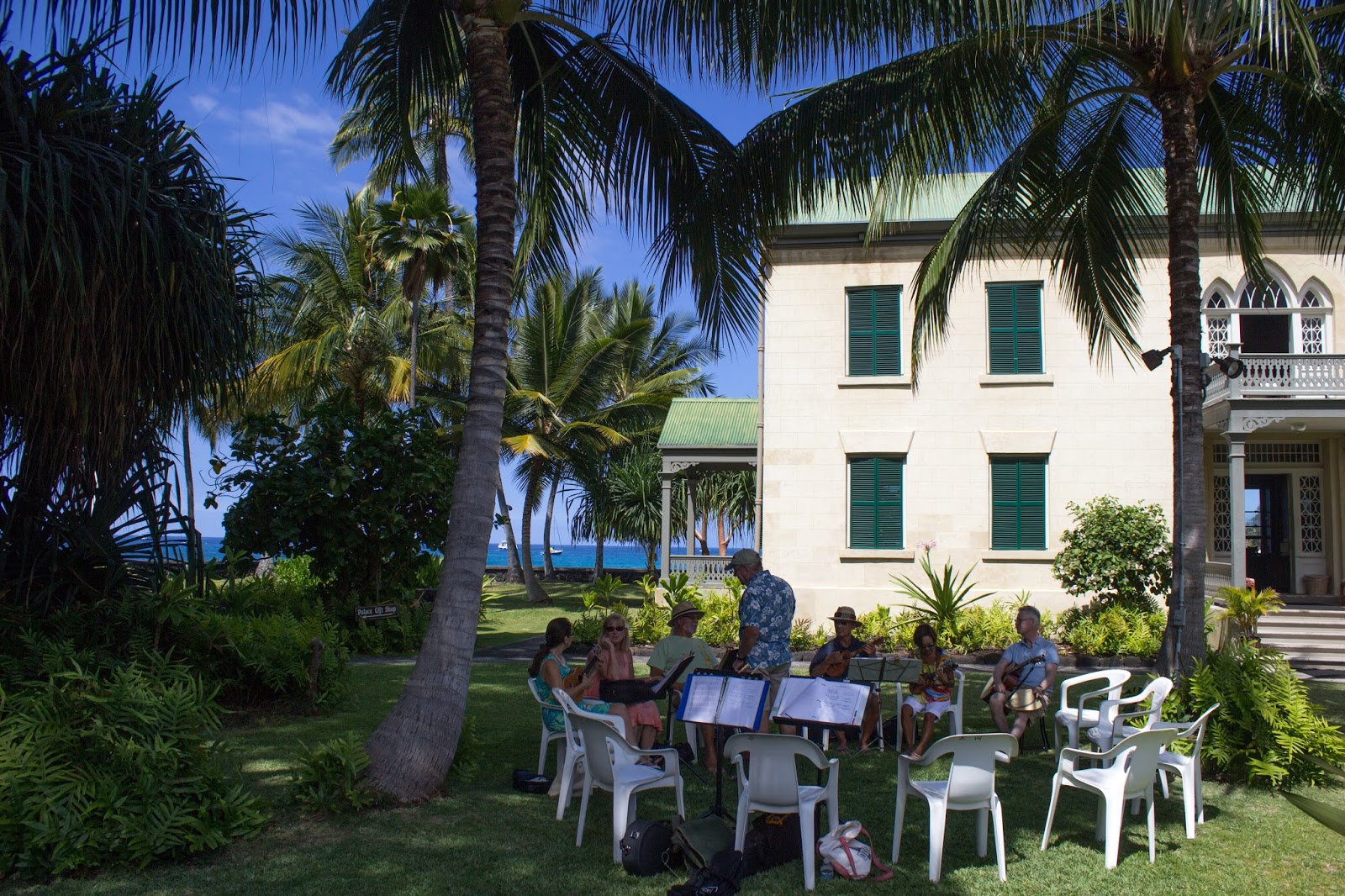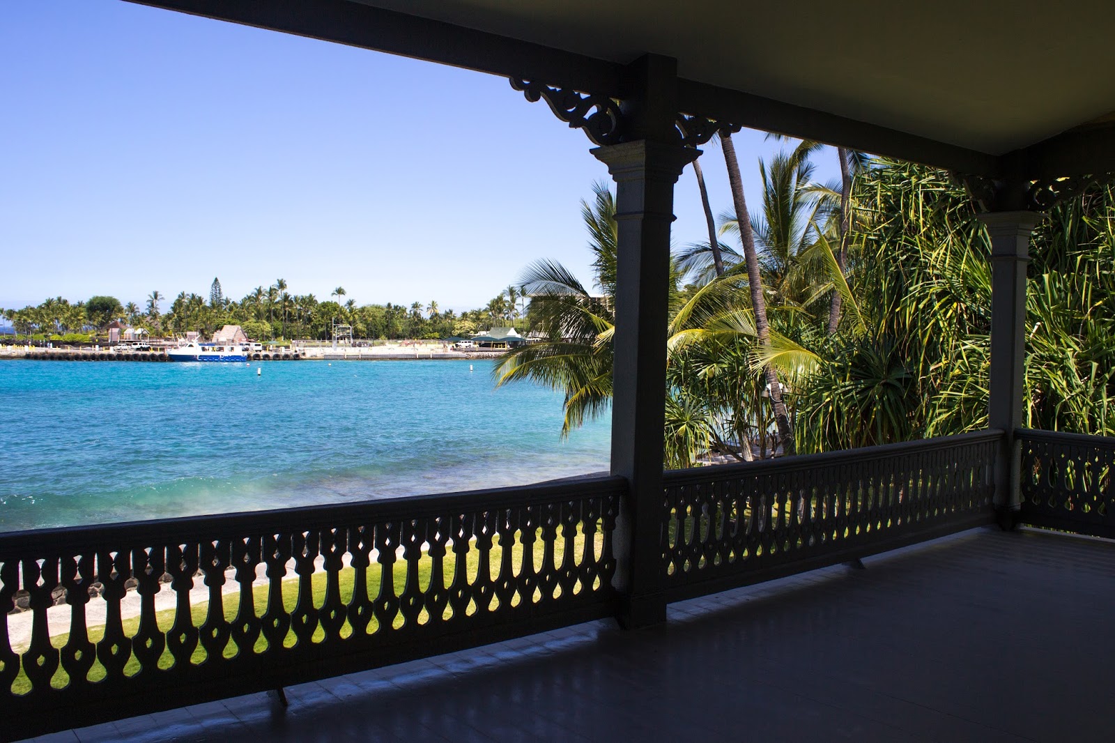 Directamente frente a la iglesia esté el palacio. Se llama Palacio Hulihe’e. Se construyó en 1838, dos años luego de que se haya terminado la Iglesia Mokuaikaua.