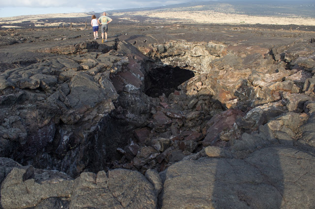 Como les había comentado en el post anterior, la lava también corre subterráneamente por lo que luego quedan estos tubos, los cuales hay veces colpsan en algunas partes, hay veces no. Todo depende de las circunstancias. Algunos de los tubos que hay en Hilo son inmensos y ya con plantas que se fueron sumando a través de los años.