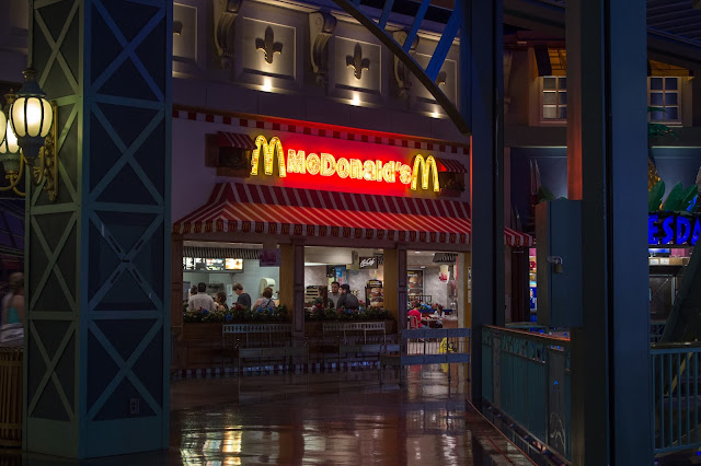 Aquí, uno de los shows gratuitos llamado la Caida del Atlantis. A cada hora unos animatronics relatan la caída del Atlantis acompañados de luces y sonidos mientras que abajo se puede ver un enorme acuario con peces reales dentro.