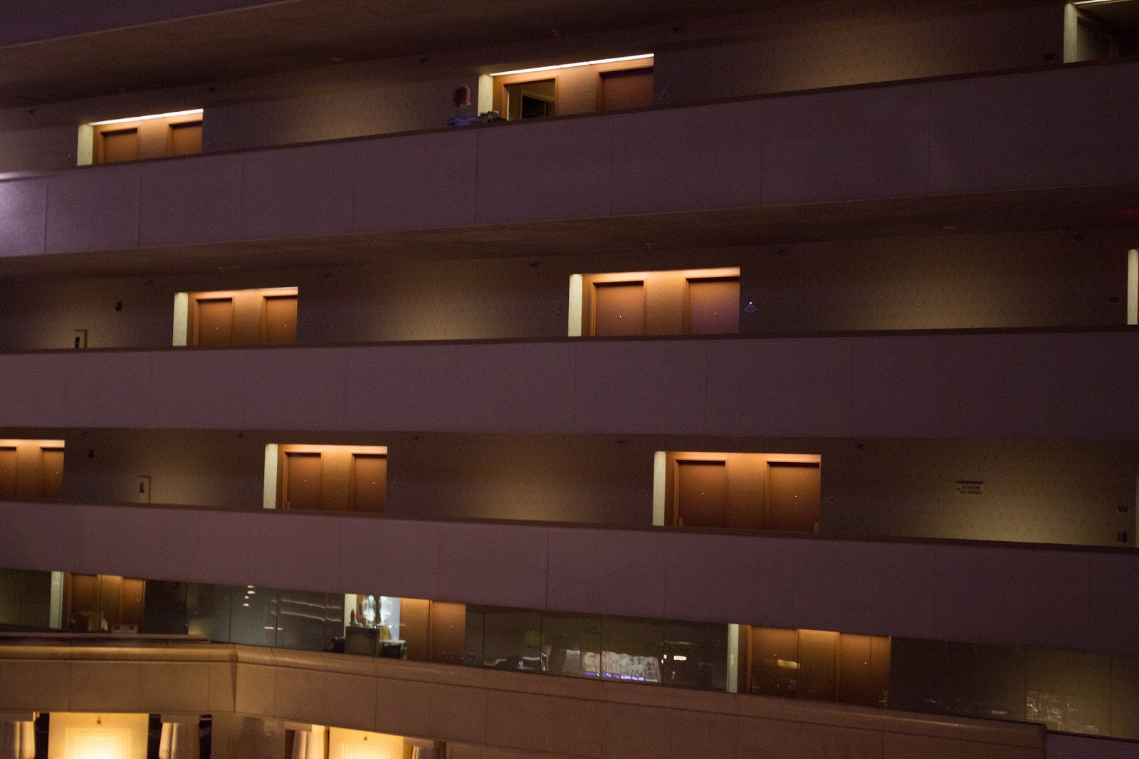 Las puertas de las habitaciones dan directamente al centro de la pirámide lo que hace de este uno de los más interesantes diseños que vimos hasta ahora.