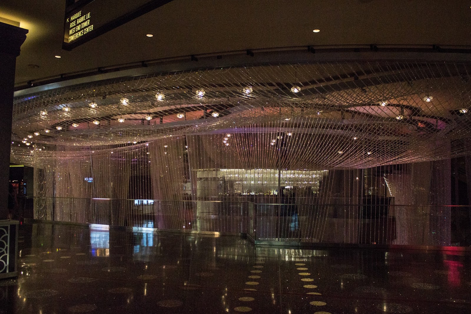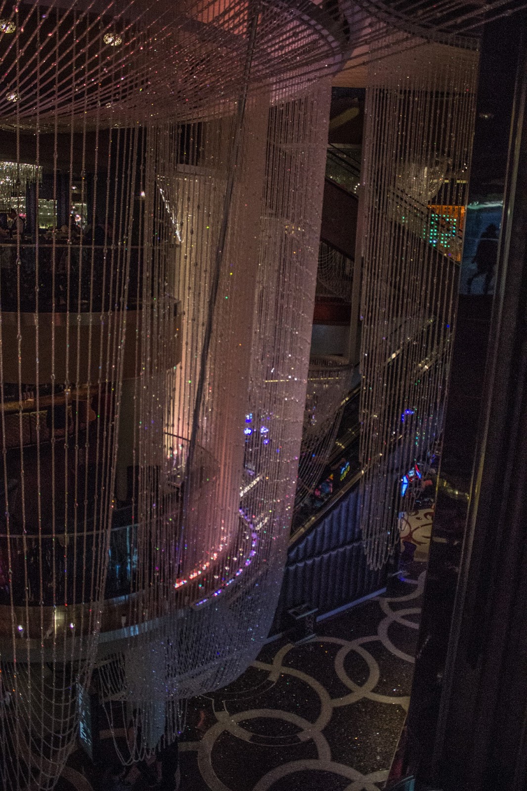 Cruzamos al Cosmopolitan solo para ver el famosísimo «candelabro» de tres pisos de alto y más de tres millones de cristales.