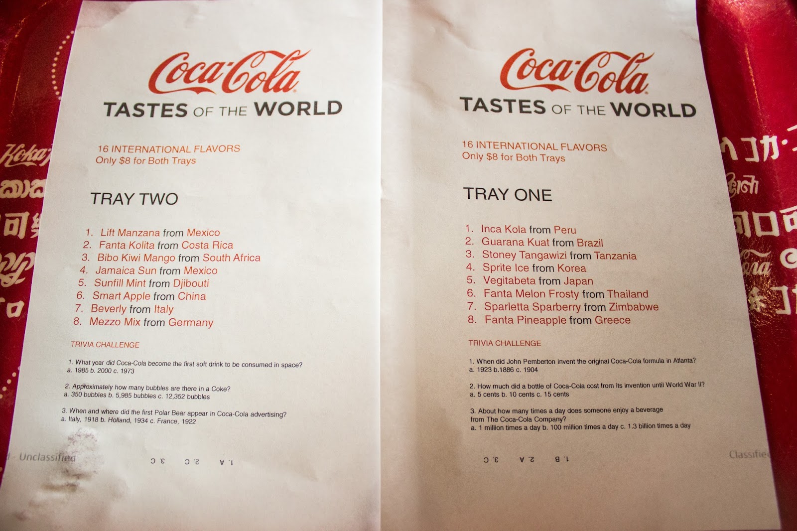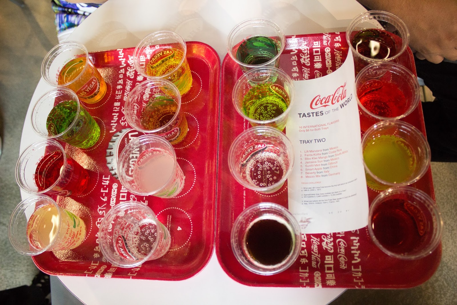 Pasamos a la tienda de Coca Cola donde en el ultimo piso encontramos una de las más interesantes actividades que encontré hasta ahora. Aquí tenemos la posibilidad de probar gaseosas de todo el mundo. A mi me encantan las gaseosas y siempre que estoy en un lugar diferente intento probar una especial y diferente. Aquí tenemos la posibilidad por un precio super bajo. 16 sabores de 16 lugares diferentes.