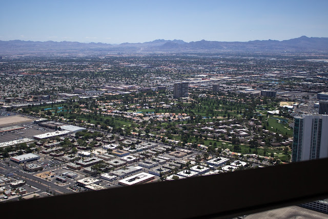 Una vez que llegamos arriba las vistas son alucinantes. Podemos fácilmente diferenciar el desierto, el punto donde empieza y termina el Strip, las piscinas, la aridez y la tonalidad de la tierra y mucho más. No les parece hermoso? a mi si! Les traigo por aquí, en la tercera parte, porque así también ustedes pueden reconocer los edificios que vimos en nuestros paseos por el Strip.