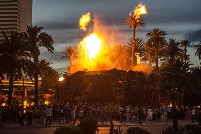 Ya terminando el recorrido y todo debidamente explicado pasamos por el volcán explosivo de The Mirage y la fuente de agua del Bellagio donde creo que olvide mencionar se encuentra también la exposición de cuadros originales de Monet más grande fuera de Paris.