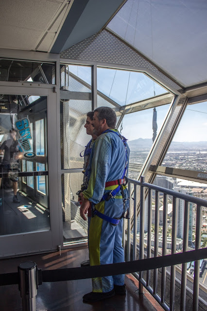 Desde aquí se controlan y se sale para saltar. Mientras mirábamos una pareja de padre e hijo se preparaban para la dosis de adrenalina. Una curiosidad? esta prohibido llevar zapatos puestos, porque? Porque en una ocasión una persona escondió las cenizas de su marido en los zapatos y las arrojó al aire al saltar. Esto esta prohibido por ley debido a cuestiones de salubridad.