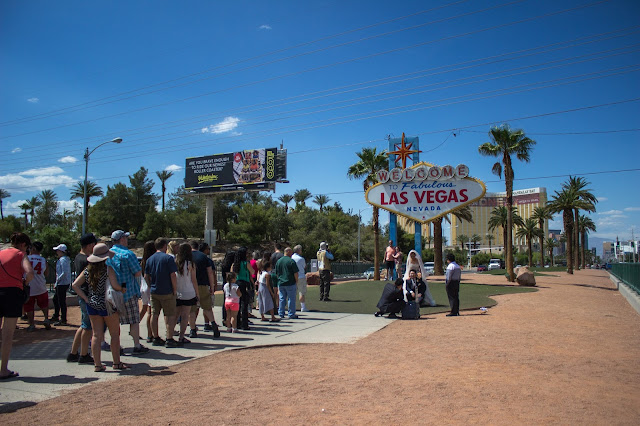 A la mañana tomamos un taxi que nos lleva al otro extremo del Strip. El lugar donde esta el famosísimo cartel de Las Vegas. Aquí decenas de personas esperan su turno para tomarse una foto.