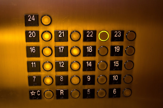 Que la capilla y la pizzeria esten en el mismo piso es de esas cosas que solo suceden aquí. Algo más, fíjense en los números que están ausentes en el ascensor. Un guiño a todos los supersticiosos.