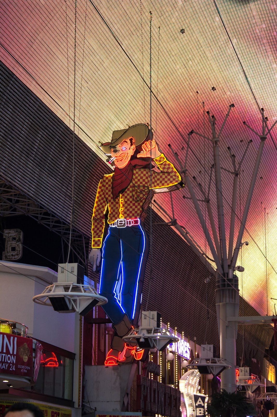 Y el más famoso es el Vic Sign o el Cartel del Cowboy. Éste todavía se encuentra encendido. Fue en su tiempo el cartel mecánico más grande del mundo cuando fue inaugurado en 1951.