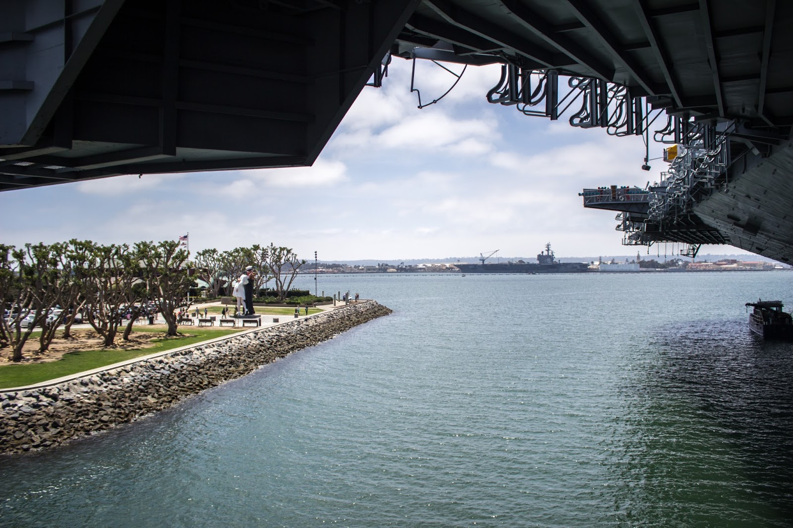 Esta obra es de autoría del artista Seward Johnson. Amado y odiado por muchos, la instalación de esta obra resultó en la renuncia de algunos de los miembros de la Junta del Puerto de San Diego. Sin embargo, el museo Midway se encargó de juntar el millón de dolares necesario para instalar esta gigantesca obra en bronce pintada.