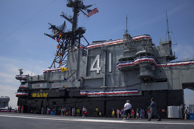Desde afuera podemos ver los aviones en la parte superior del buque. A medida que nos acercamos nos damos cuenta de sus dimensiones. Este gigantesco buque estuvo en operaciones por un total de 47 años, desde 1945 hasta 1992, y entre sus misiones se encuentra, por ejemplo, la de la Guerra de Vietnam.
