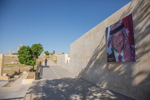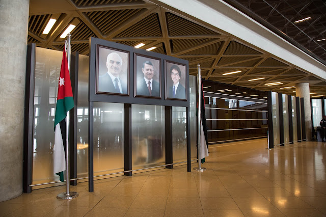 Las fotos de Hussein I, Abdullah II y Hussein (actual príncipe heredero hijo de Abdullah II y Rania) se pueden ver en muchos sitios. Este primer ejemplo es en el Aeropuerto. Pero más adelante verán las fotos en otros lugares.