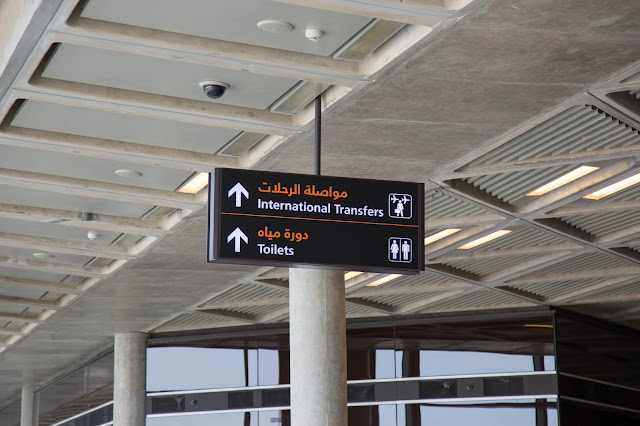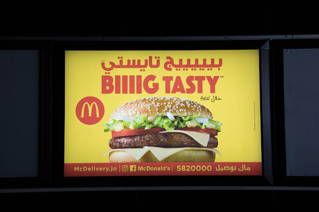Apenas llegamos y recordamos que estamos en un país donde el idioma oficial es el árabe. En la capital, Amman, muchos carteles se encuentran escritos en letra latina o romana o grecoroma (como quieran llamarla) y en alfabeto árabe. Esto sin embargo cambia a medida que nos vamos alejando de la gran ciudad. En Amman, vemos también carteles con palabras en árabe pero los números en alfabeto latino, sin embargo volvemos a ver la diferencia cuando nos alejamos de la capital.